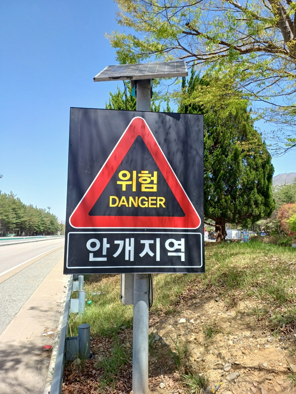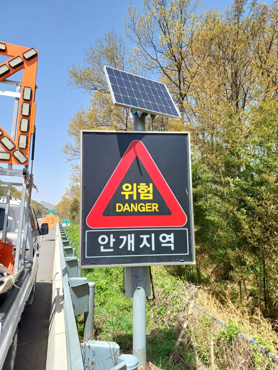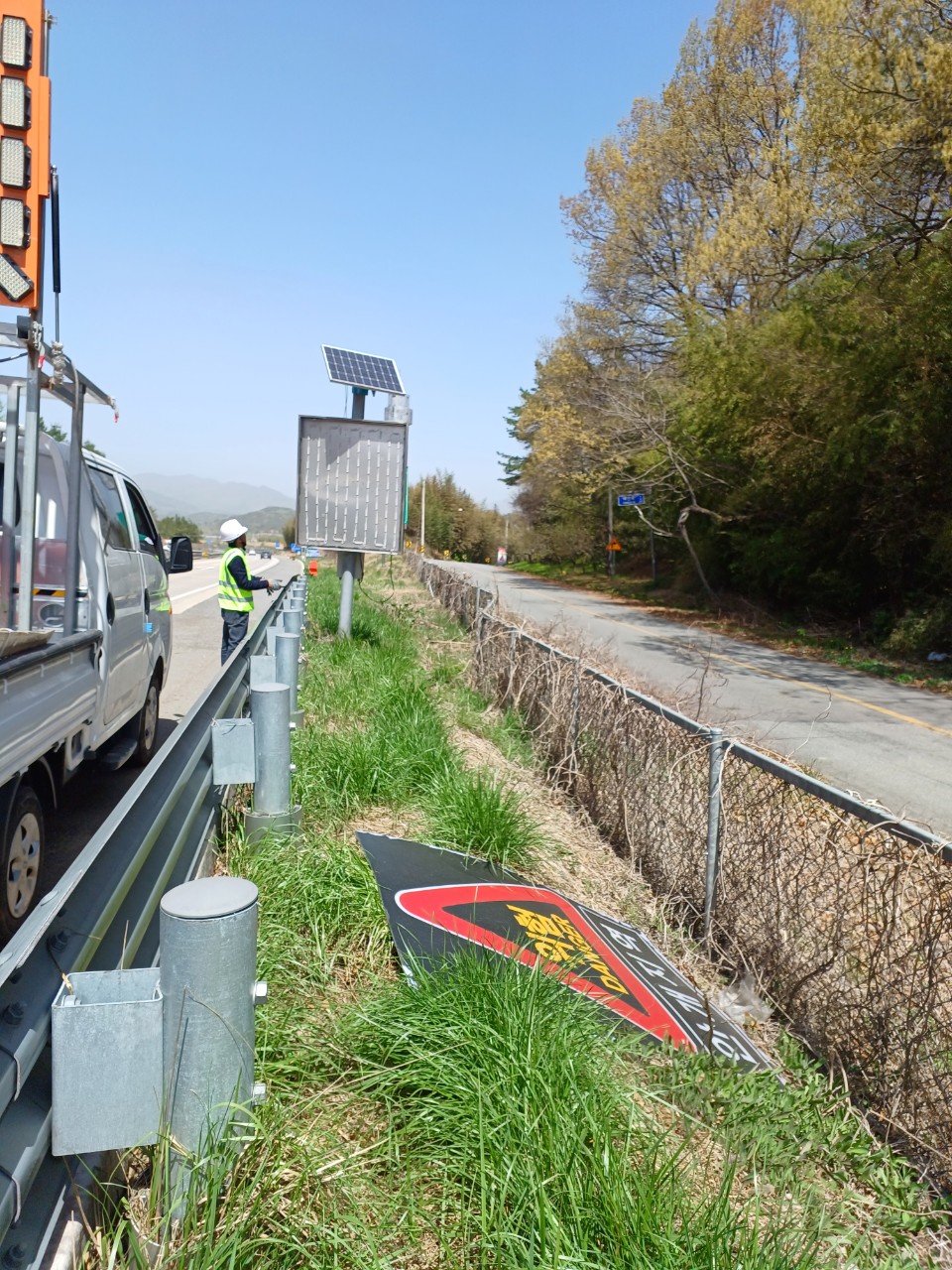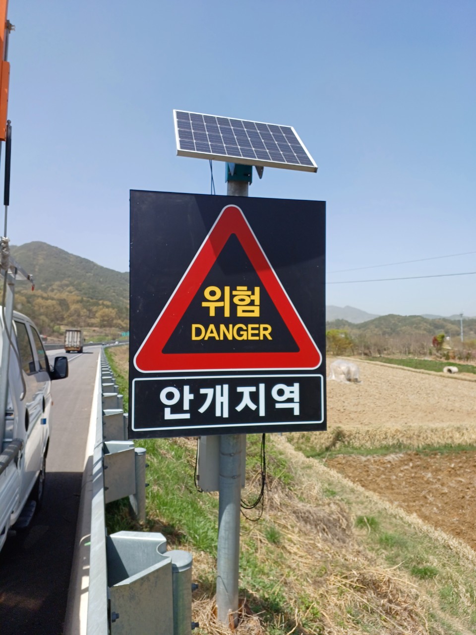 안개지역주의 표지판을 설치한지 육개월도 안되어 문제가 심각하다고 연락이 와서 개선을 했다.
