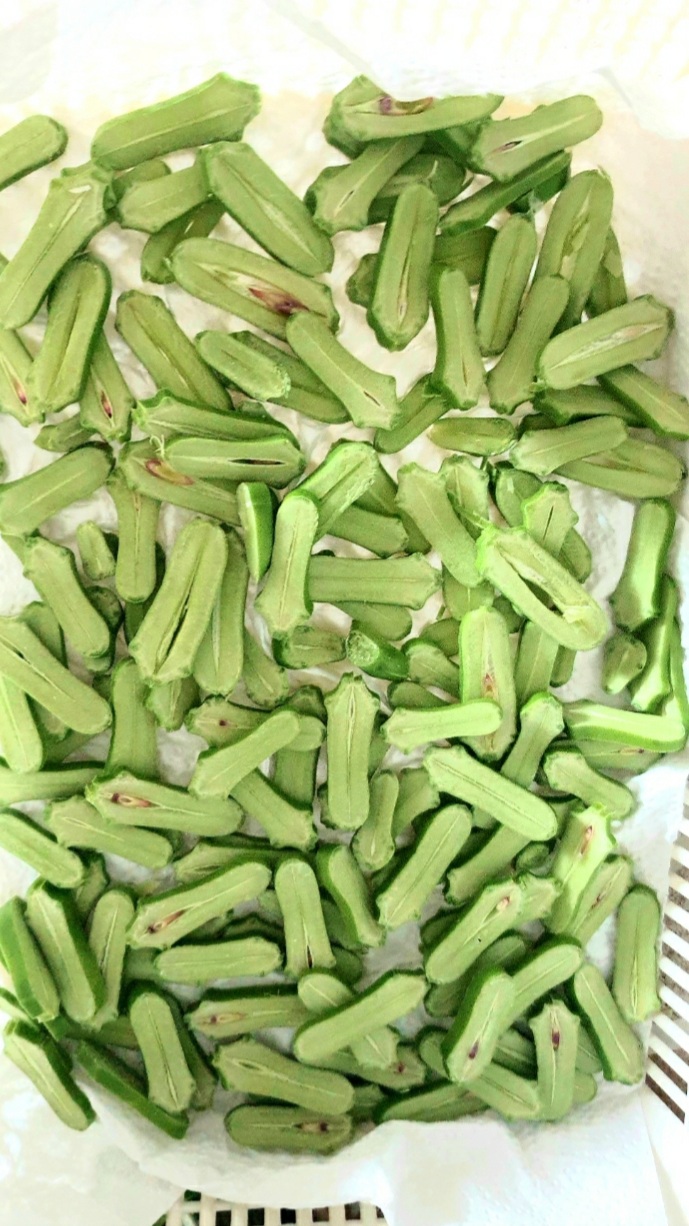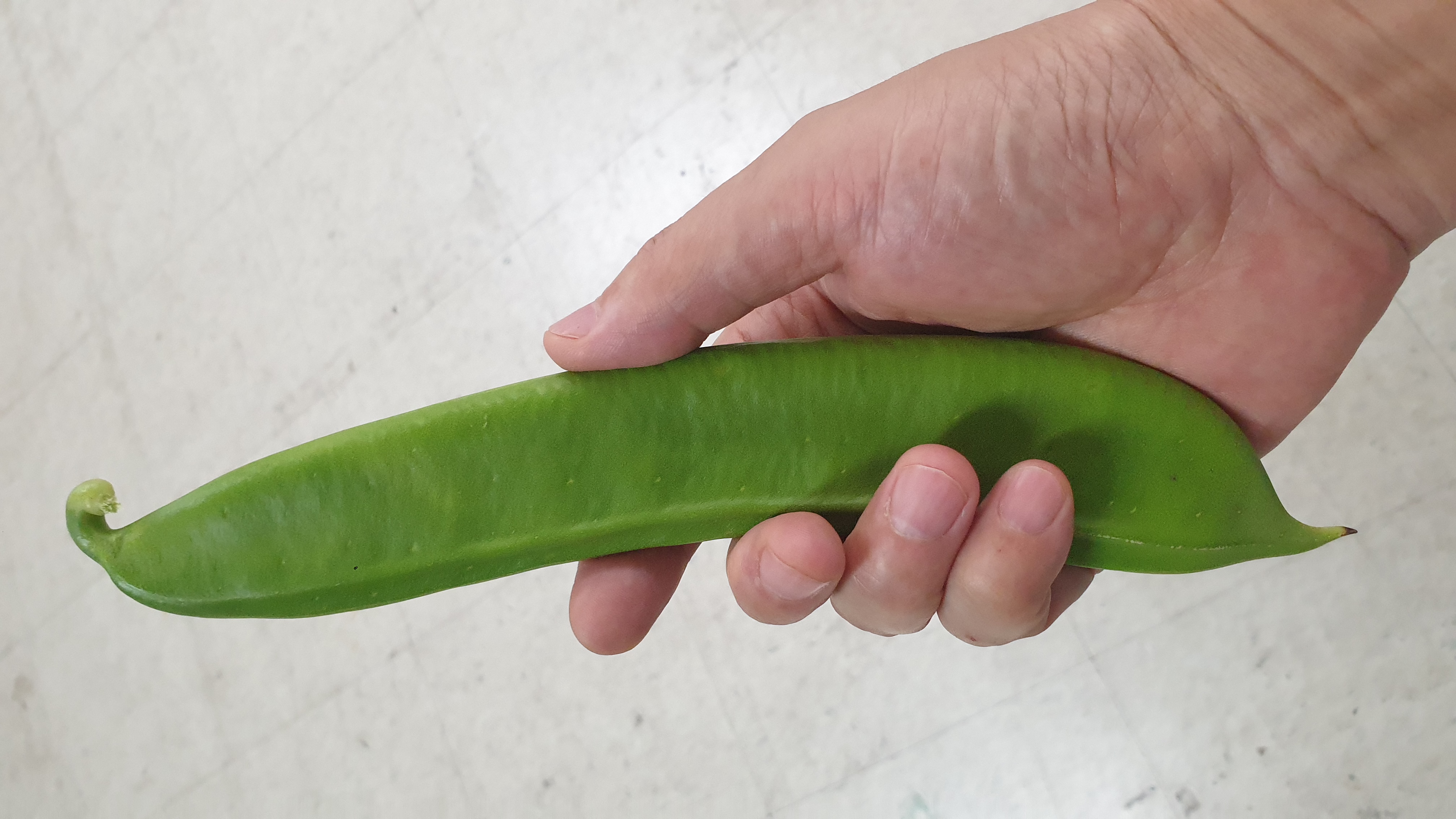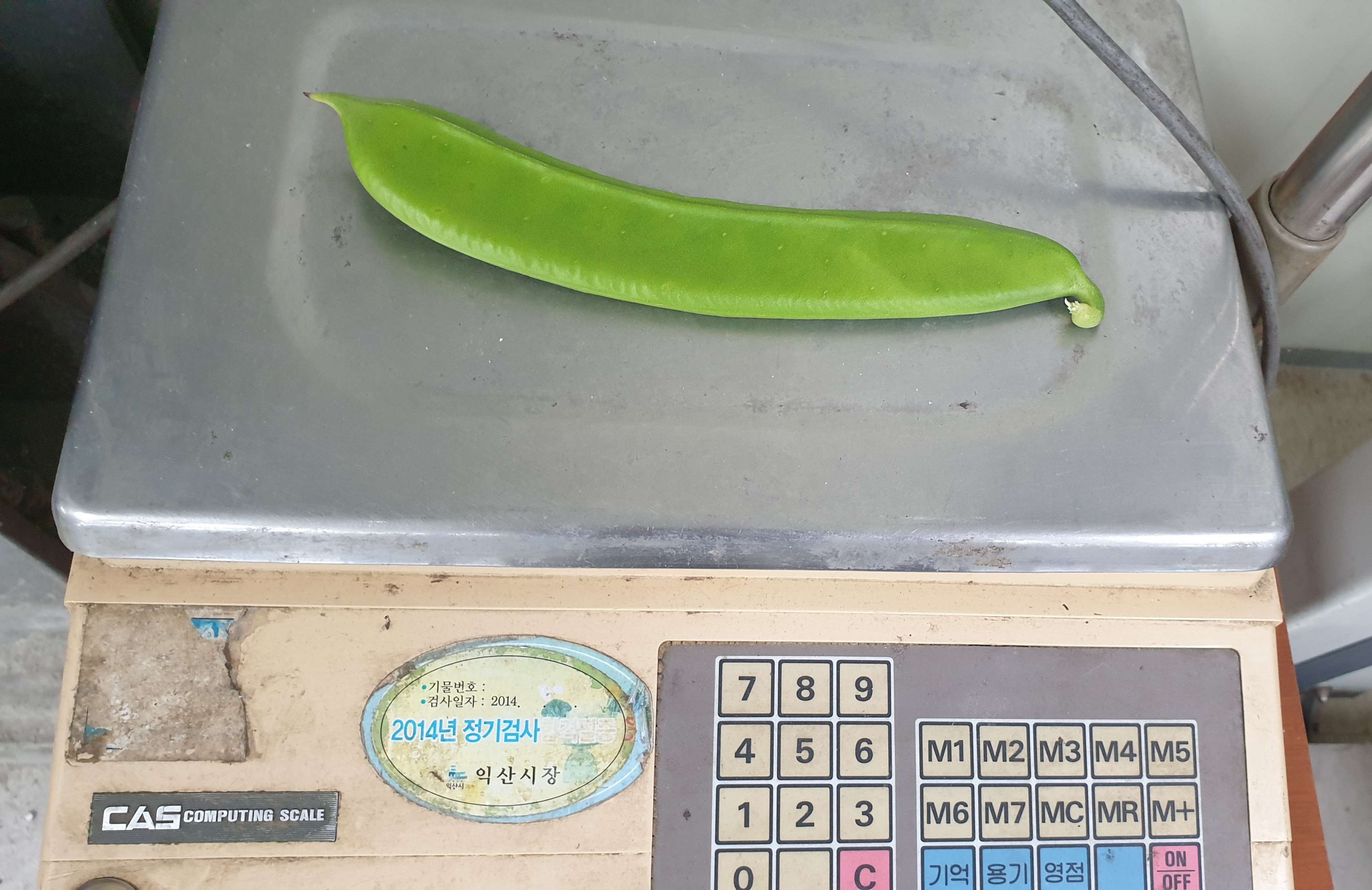 작두콩 첫 수확을 했다. 너무 키우면 껍질이 딱딱해져 차로 달여 복용이 어렵단다. 작두콩 세 개를 따서 세척 후에 물기를 제거하고 도마 위에 놓고 칼로 절단했다.