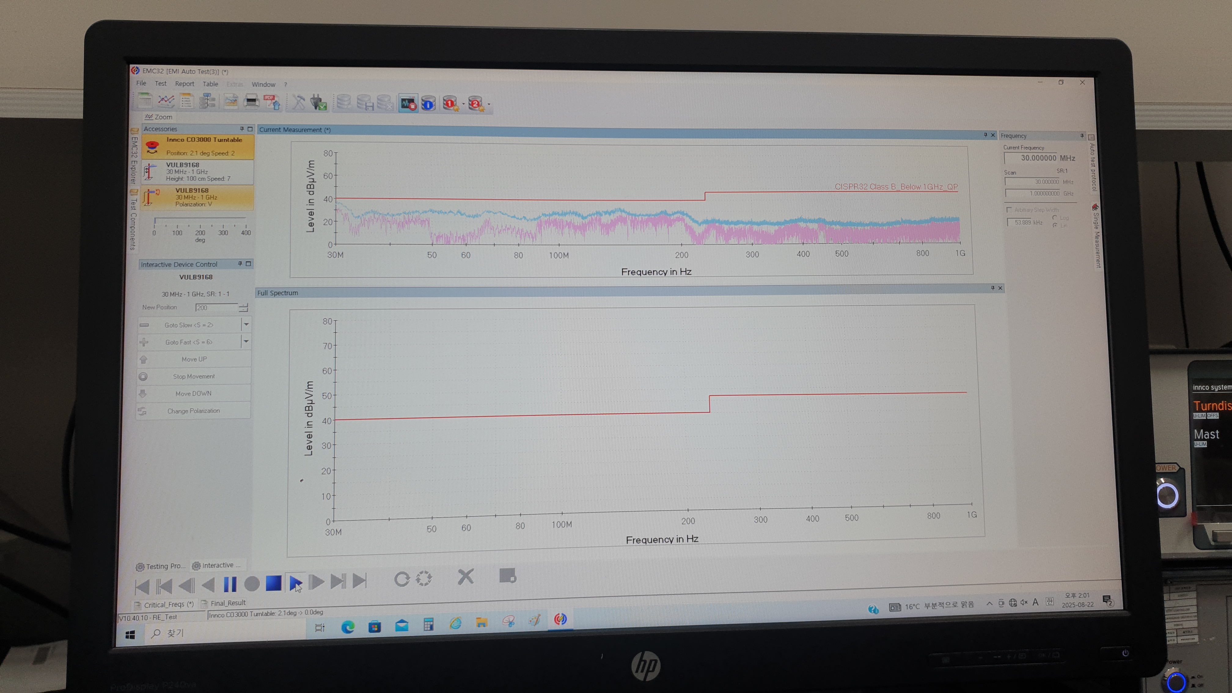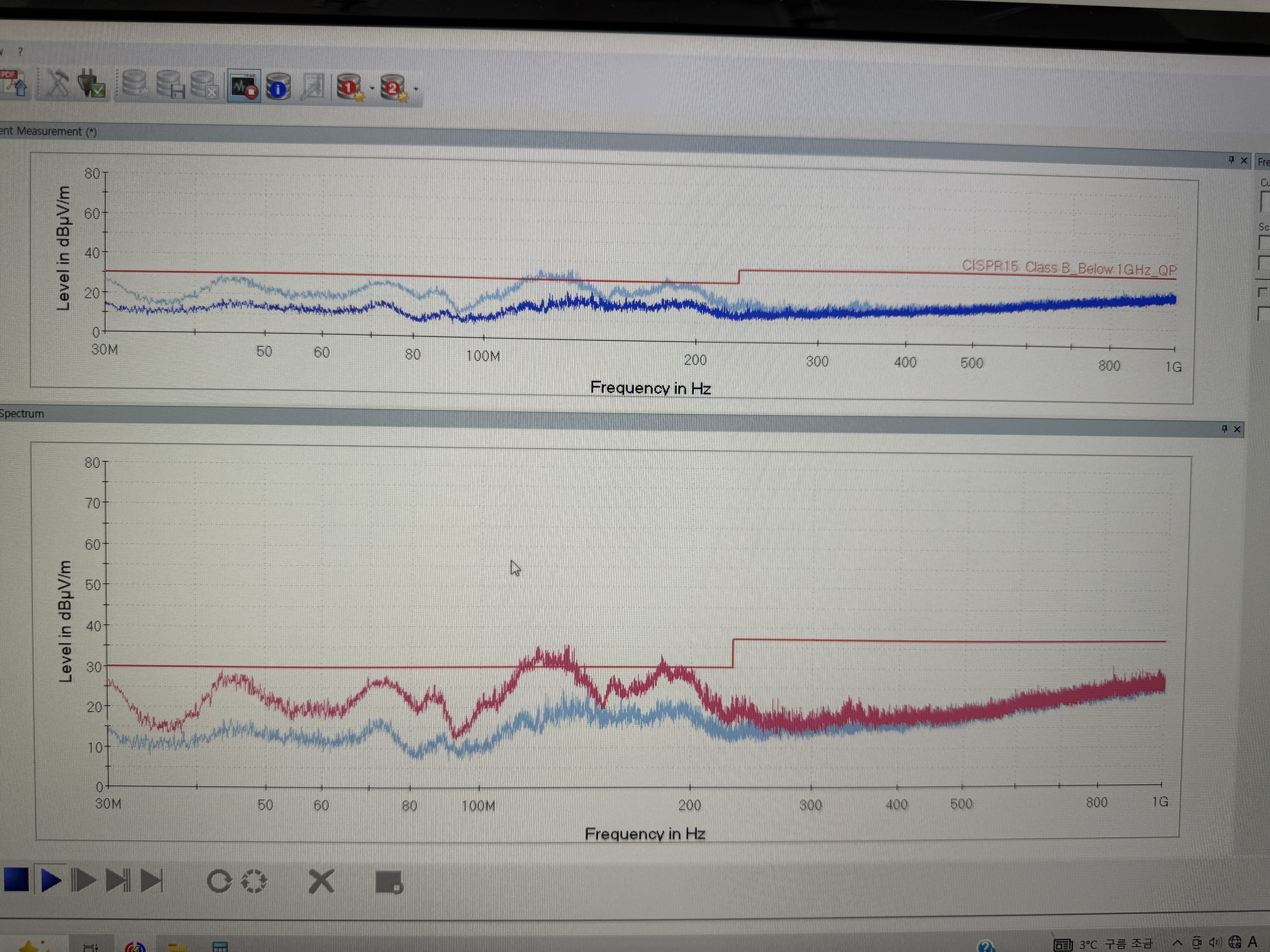 1차 시험에서 120MHz와 180MHz대역에서 부적합 발생해 이를 개선했으나 30MHz대역에서 불안정한 상태다. 방사성EMI와 전도성EMI시험에 적합되기를 바라는 마음뿐이다. 짧은 시간에 디버깅을 하다 보니 긴장되어 온몸이 땀으로 흠뻑이었다.