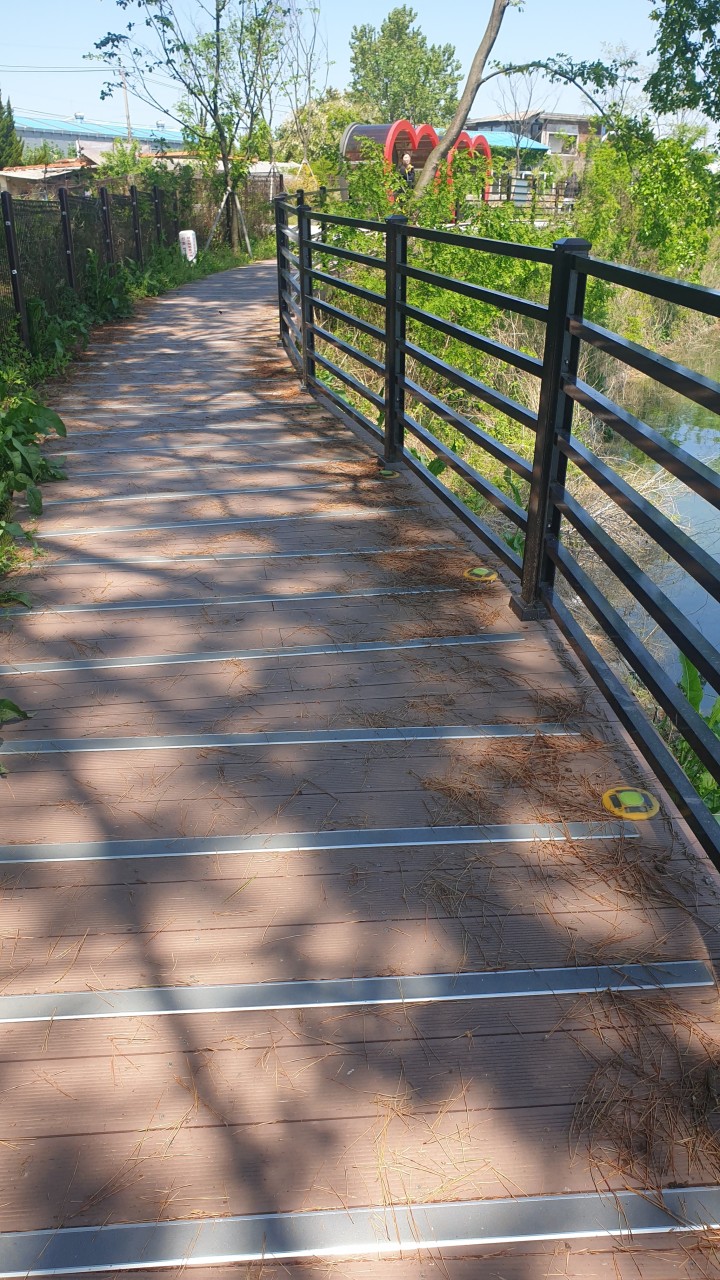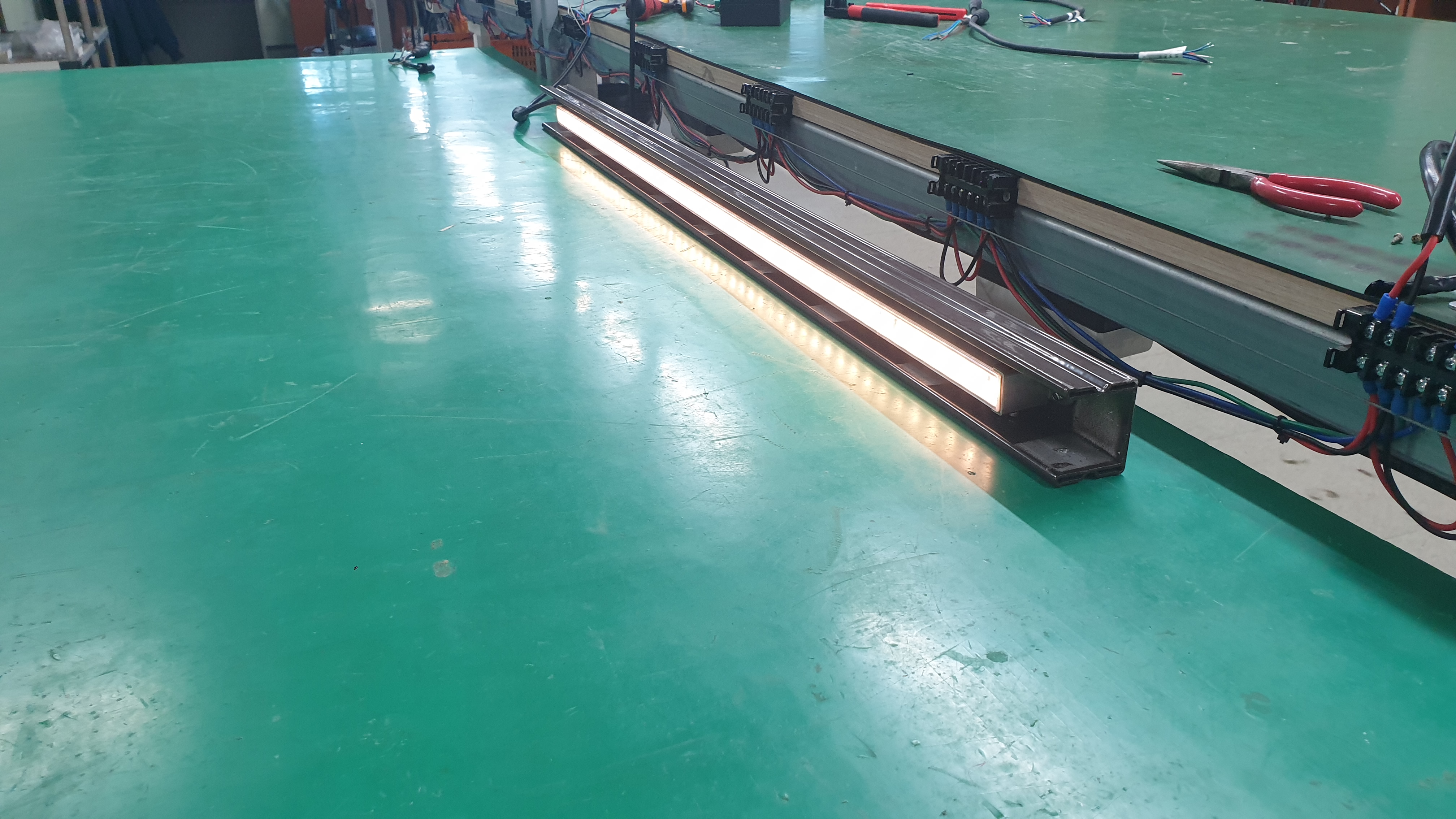 3년 전에 휀스지주용으로 압출금형을 제작하고 시압출 생산한 것이 생각나 LED바등기구 덮개로 활용하면 좋겠다 판단해 실험을 해봤다. 직접 설치 현장에 가서 발로 밟아 가며 외부충격도 확인도 해봤다.