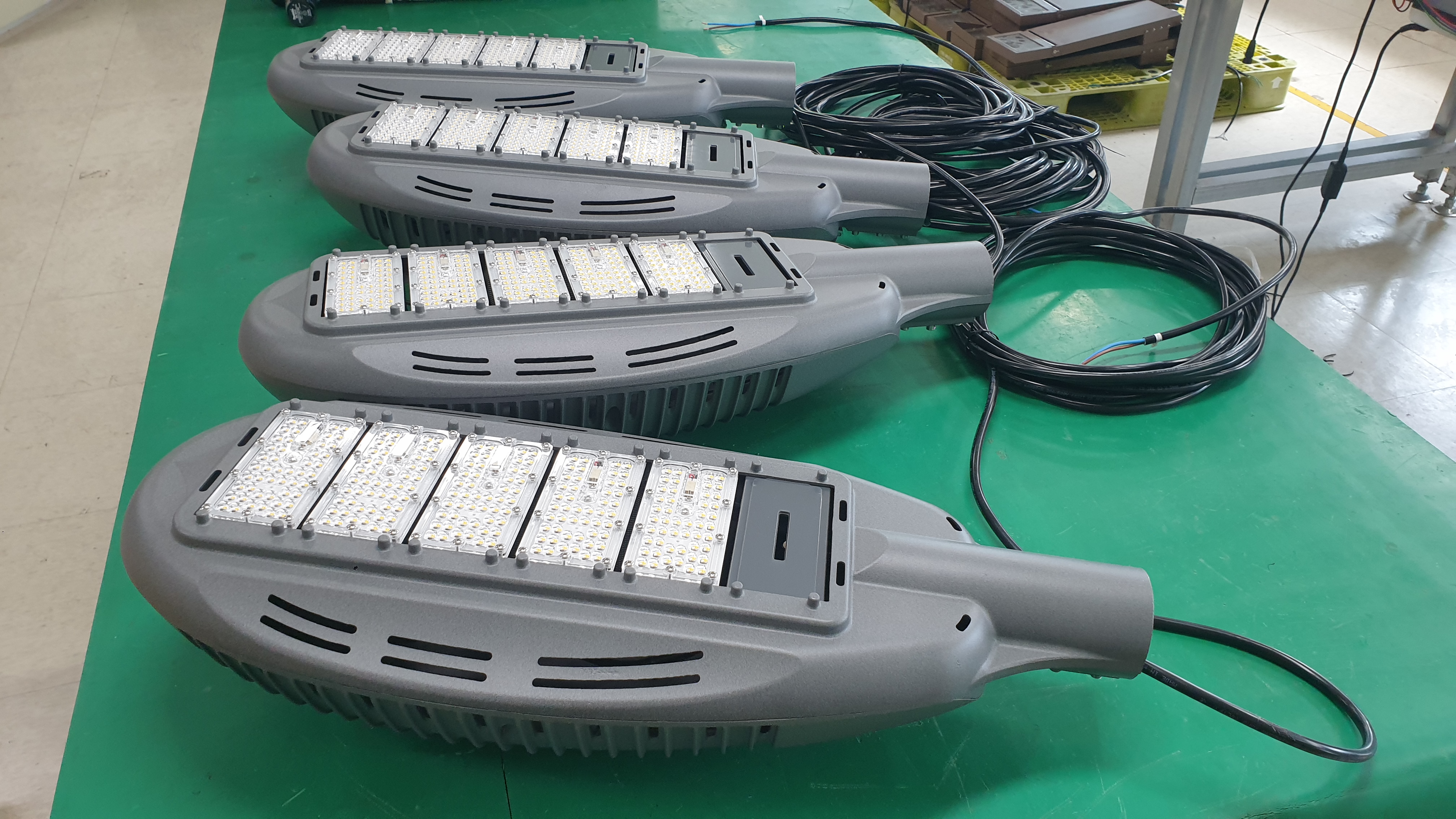 LED가로등기구는 150와트 이하가 일반적으로 사용되고 설치 높이는 8미터,10미터,12미터이다. LED보안등기구는 8미터 이하다.