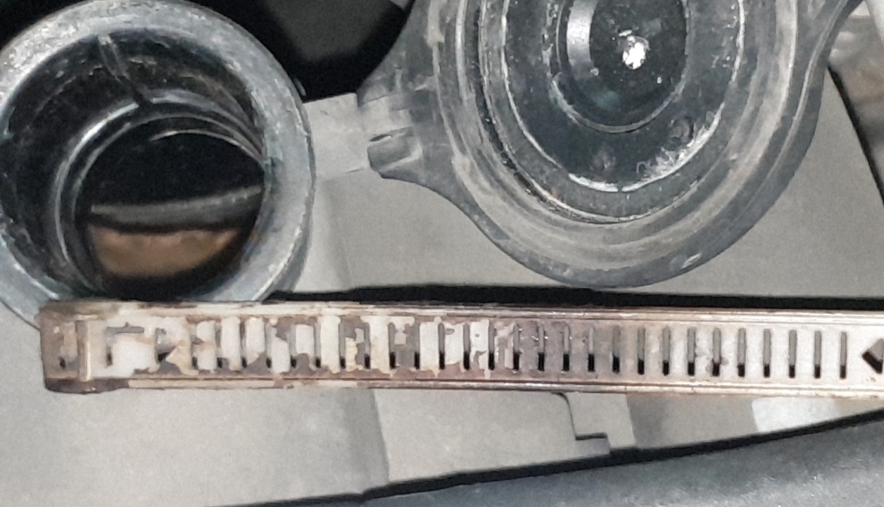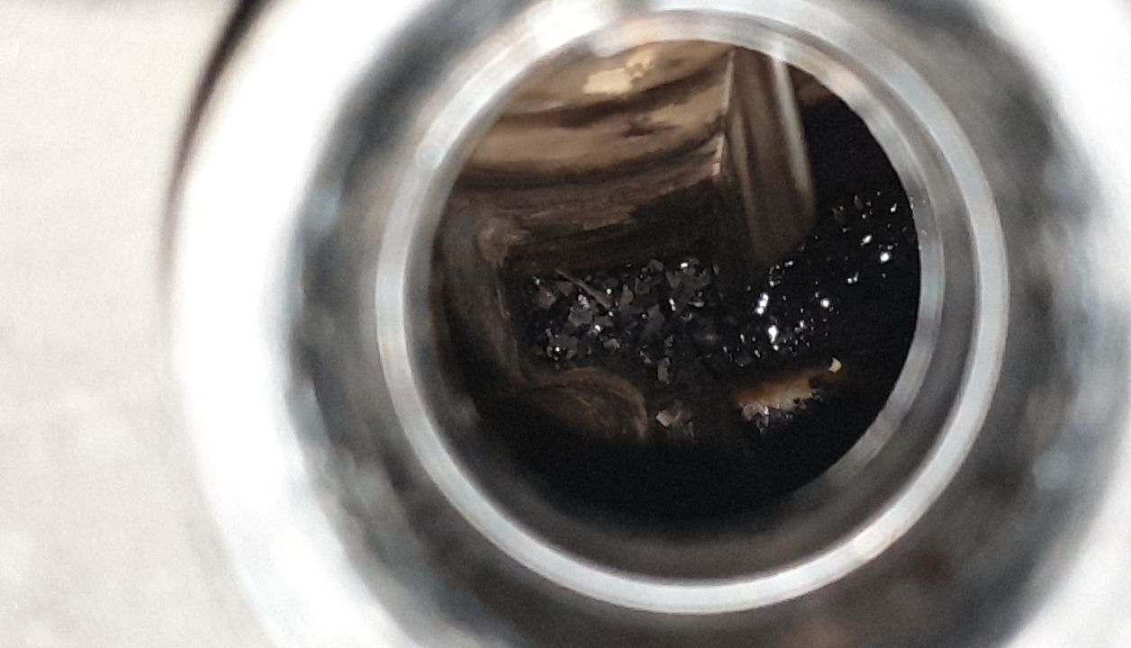 엔진헤드개스킷 손상 → 냉각수 소모 + 오일 유입 가능 (사진 3번의 오일구멍 내부에 검은 슬러지와 찌꺼기 보임 → 블로바이 심하거나 개스킷 손상 의심)
