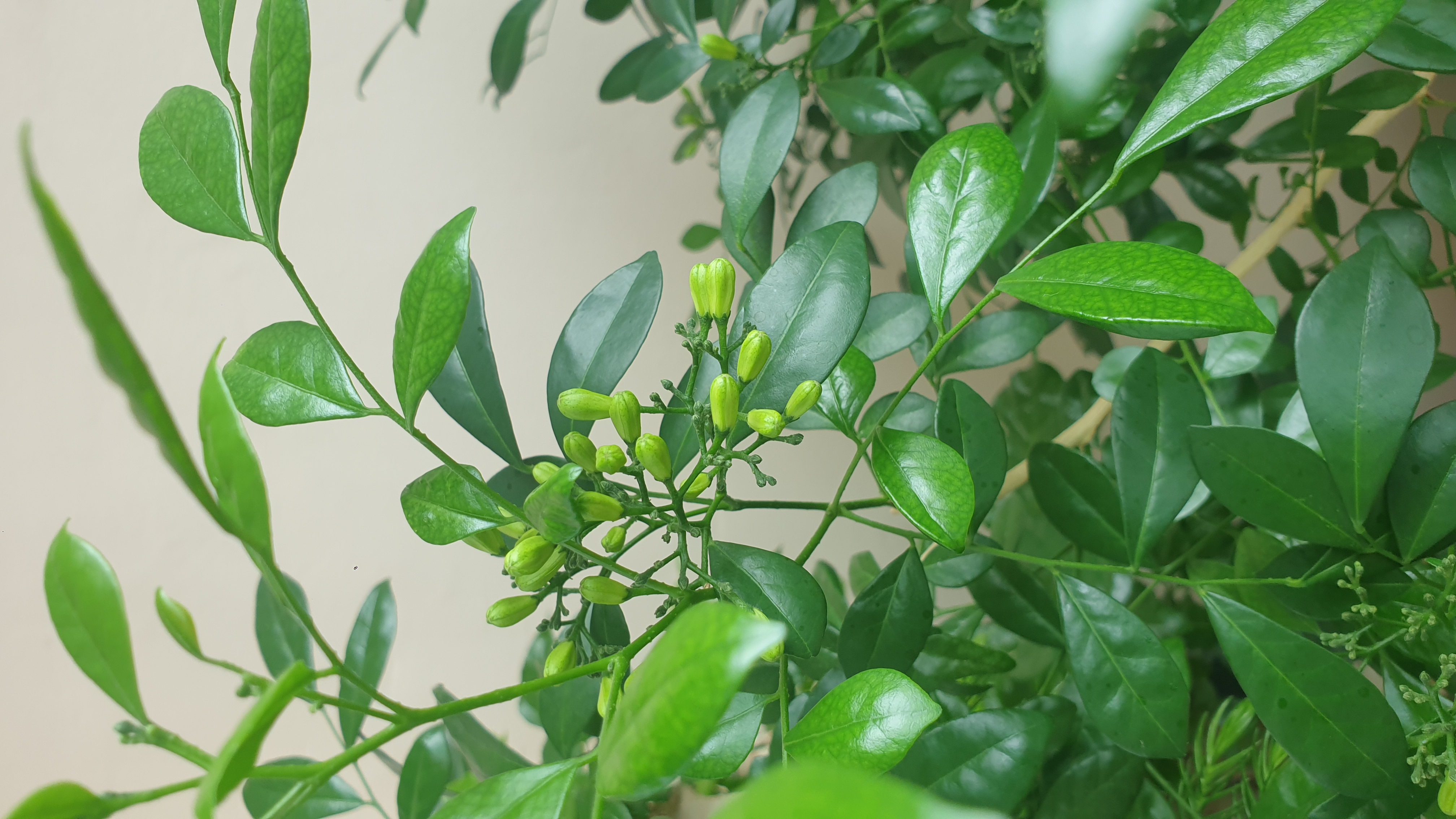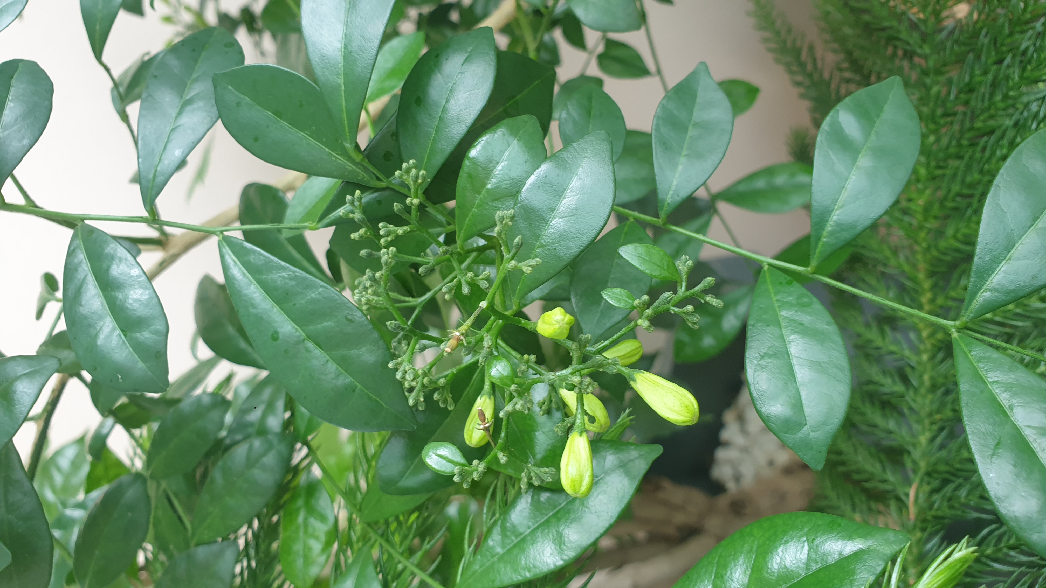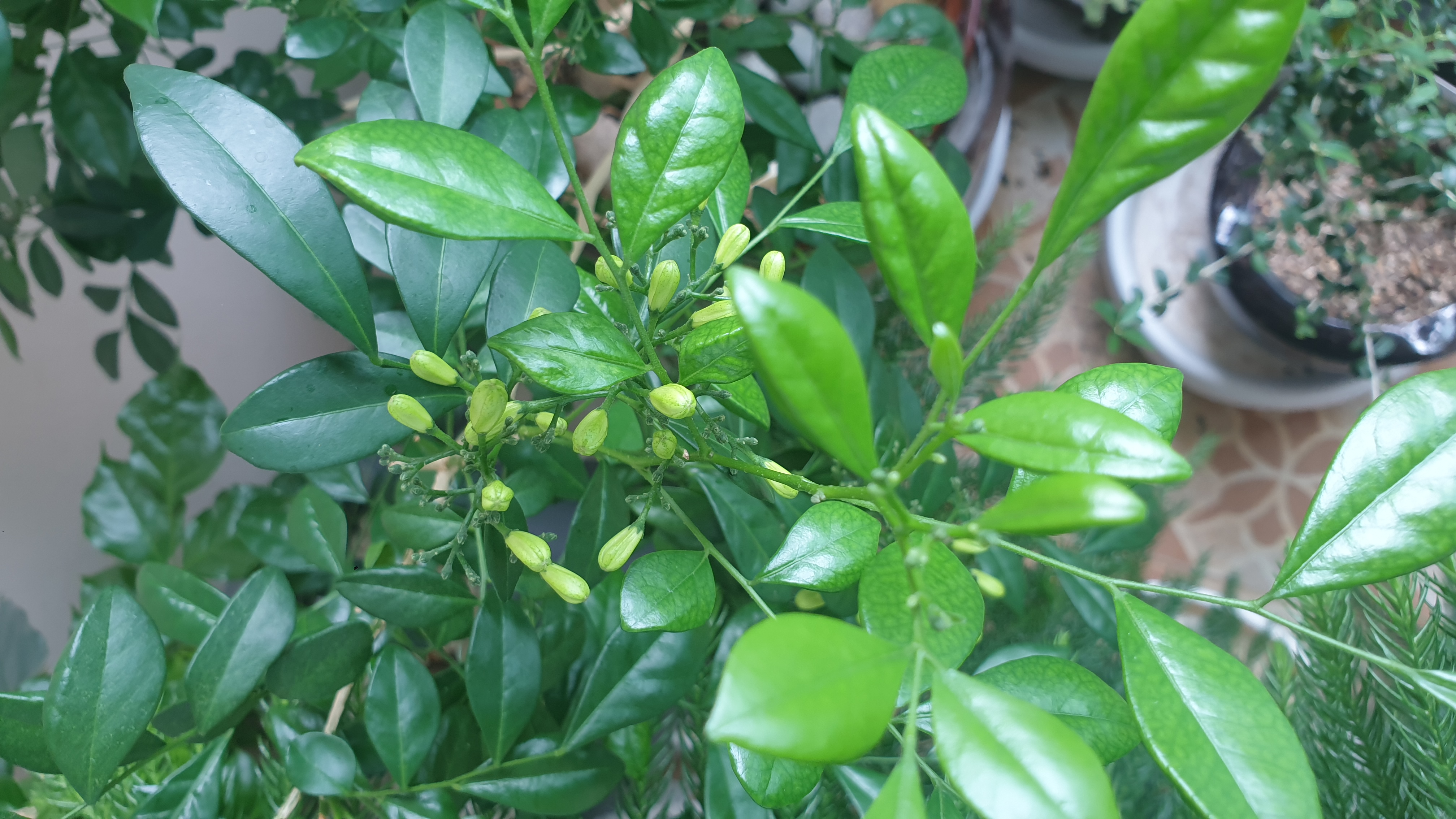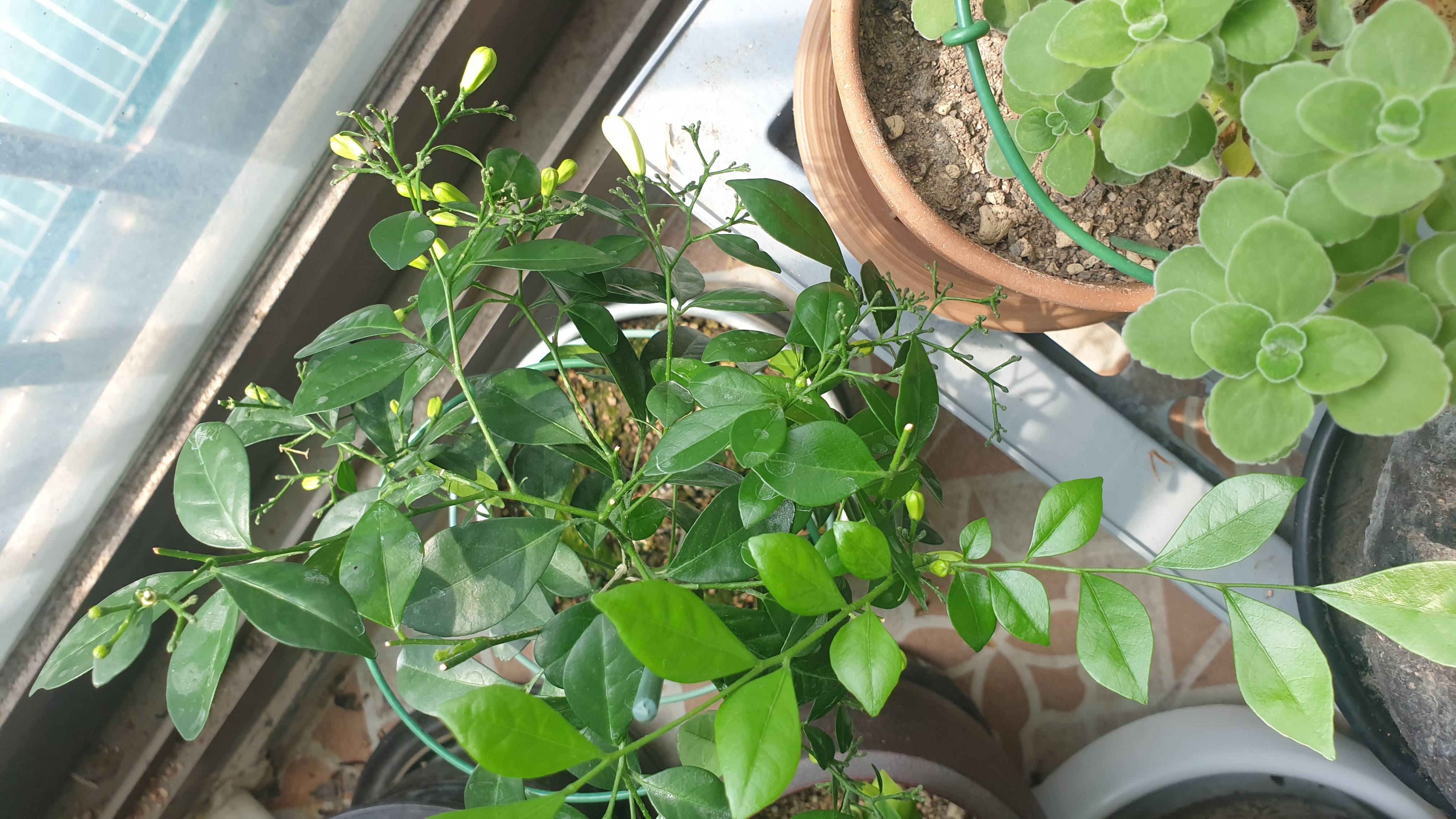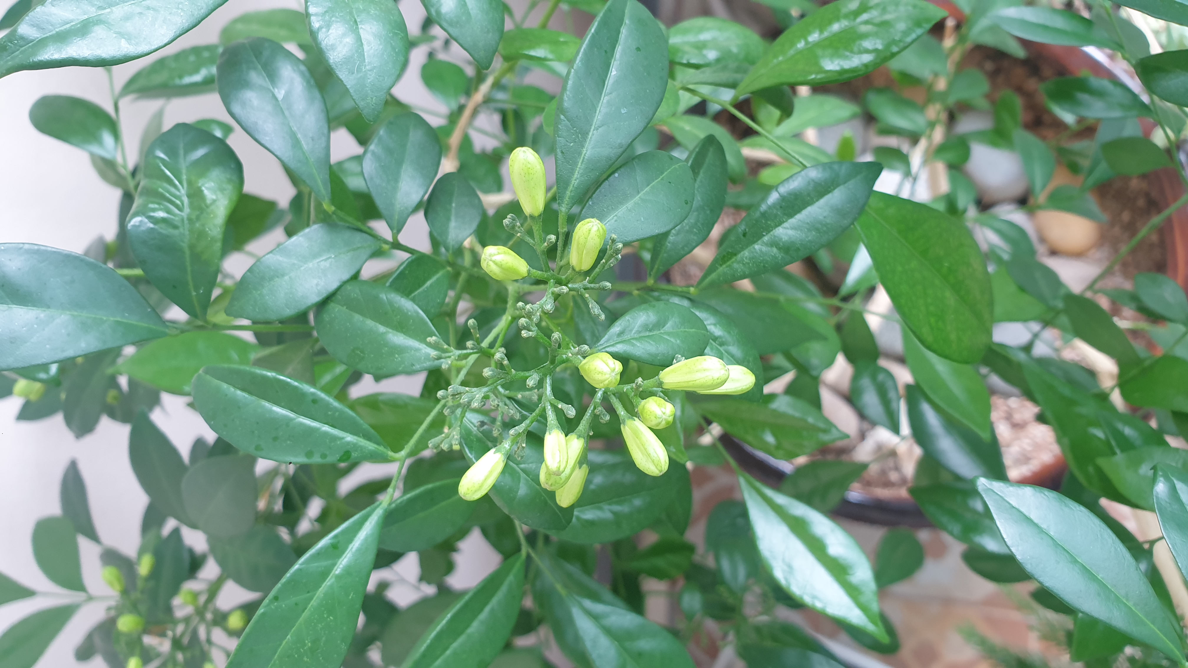 오렌지 재스민꽃이 화려하게 피려고 꽃몽오리가 많이 맺어 있다. 지금까지 지켜본 가운데 처음이다.