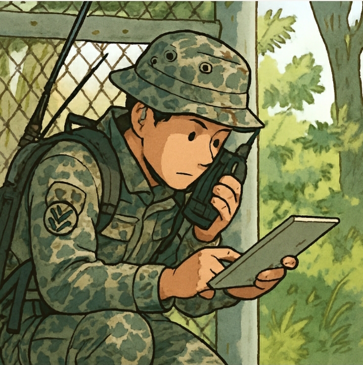 특전사 귀성부대원들과 훈련한 특수작전항공단 통신부사관이 정찰작전 완료 후 퇴출을 위해 미군 측과 항공유도 교신을 하고 있다.