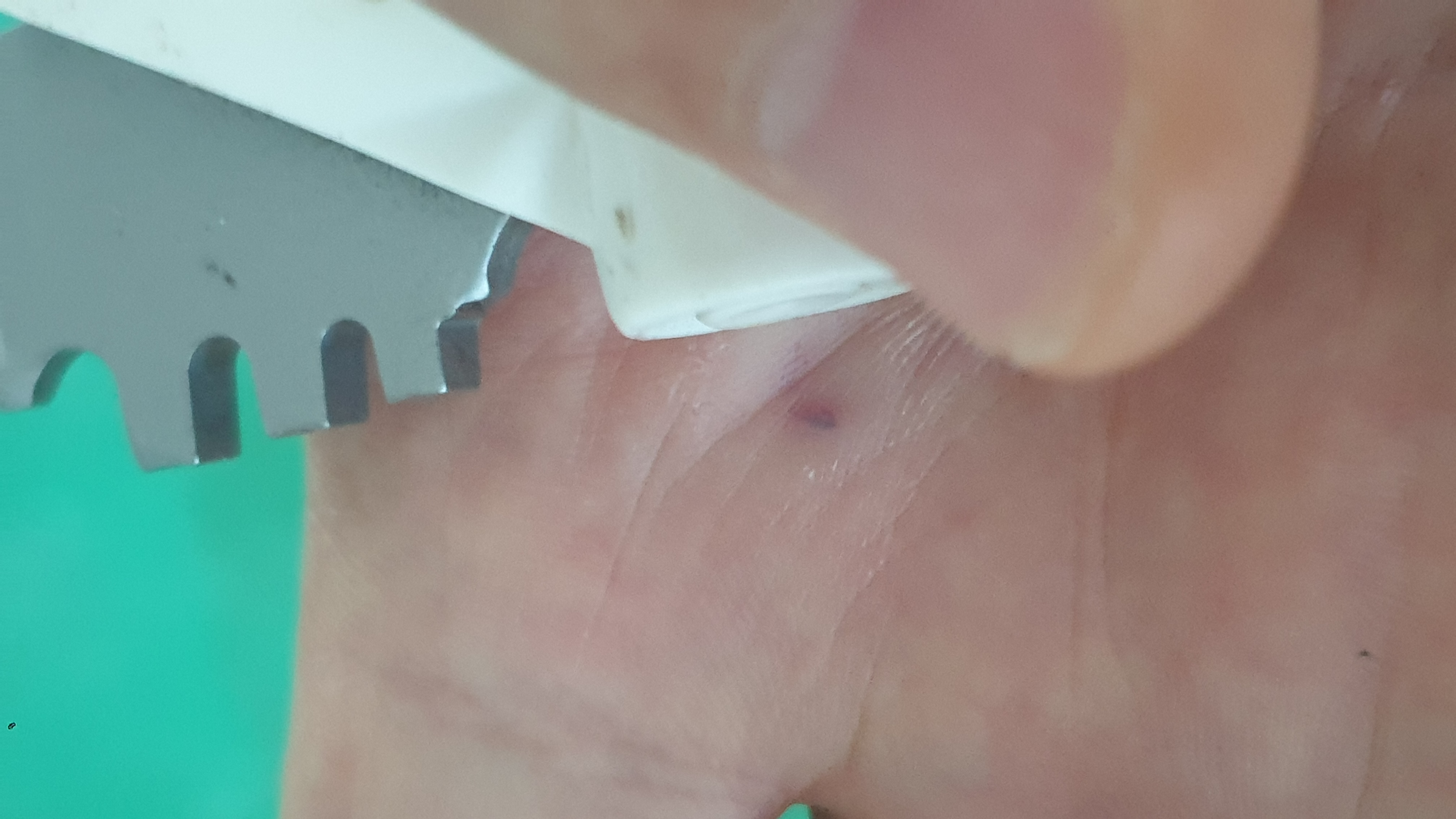 ToolStar라고 레이저 각인된 전지가위를 두 개 비싸게 구입했다는데 얼마 사용하지 않아 스프링이 한 개 달아나고 빠지기를 반복하더니 결국 작업 중 손바닥 굵은 전선 외피를 탈피하다가 스프링 빠진 부위의 압착으로 손바닥이 찍혀 순간 피멍이 들고 통증이 너무 심해 에탄올로 소독하고 얼굴등에 사용하는 초미니밴드를 부착했다. 벌써 삼일째다.