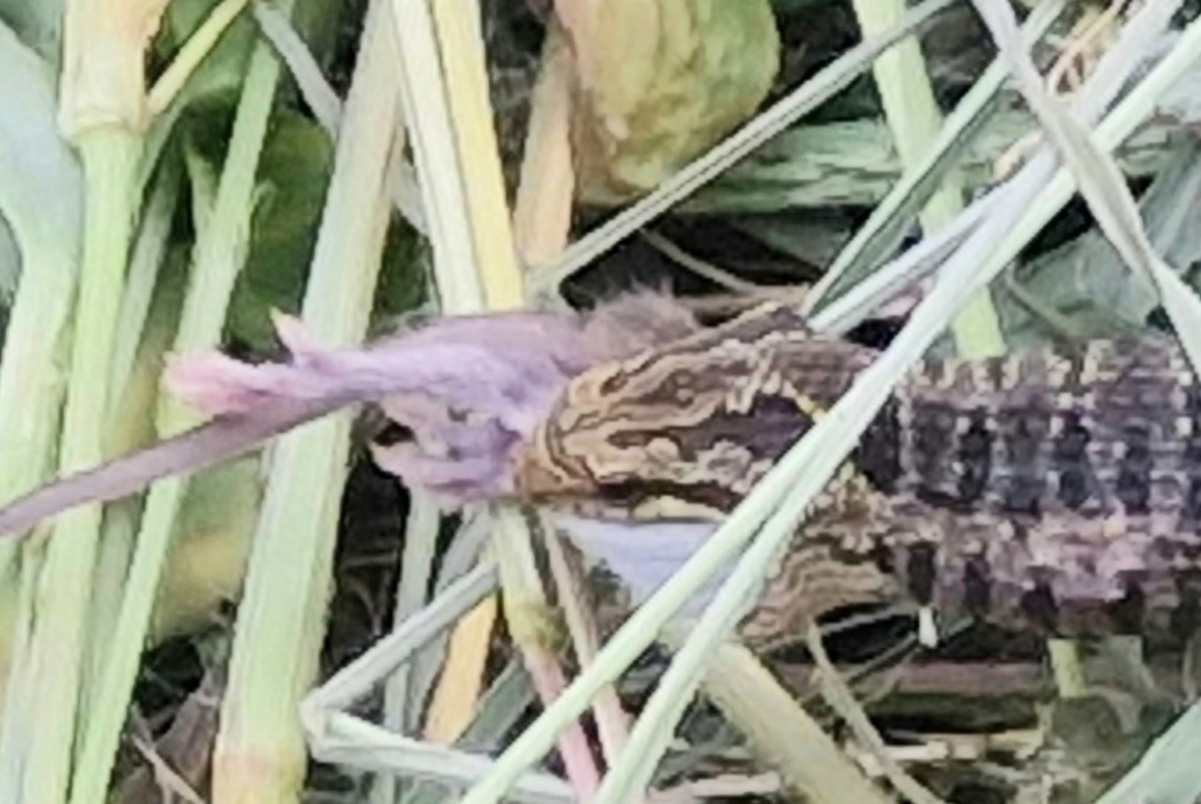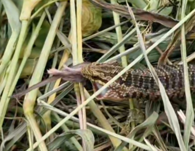 맹독 칠점사 새끼가 생쥐를 잡아 삼키고 있는 장면을 포착했다.