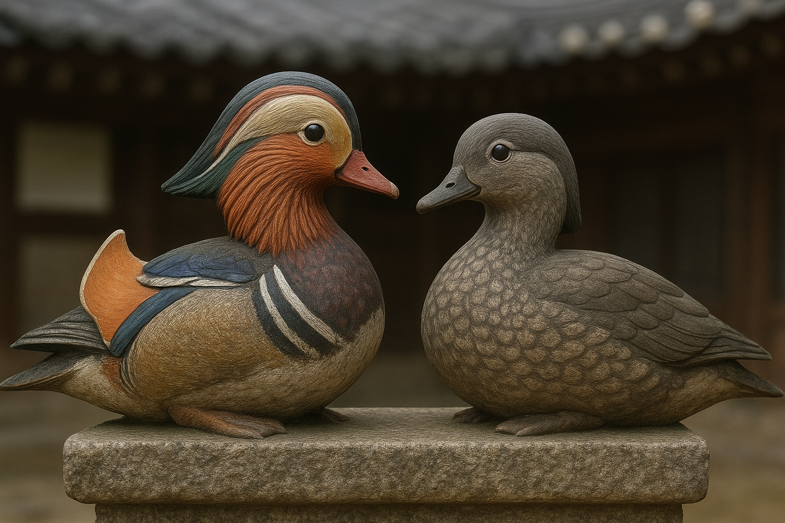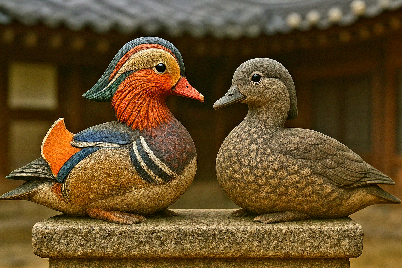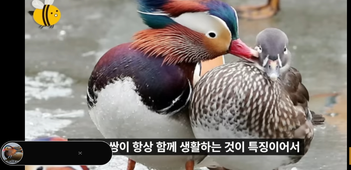 영상을 스틸컷 한 것을 활용해 우리나라의 천연기념물로 지정된 원앙새 한쌍을 MS사의 Copilot을 이용해 실물같이 그려라 했다.
