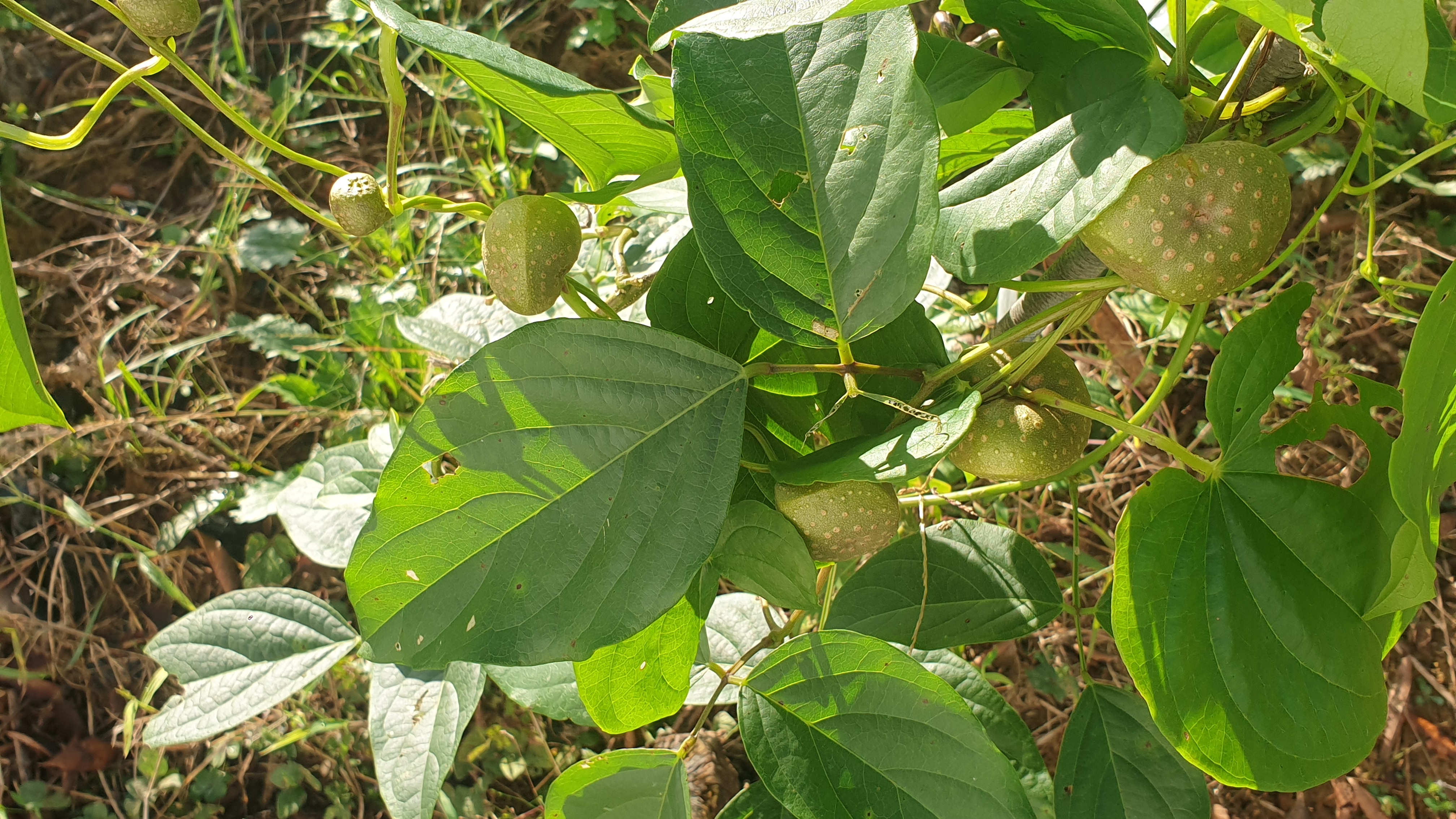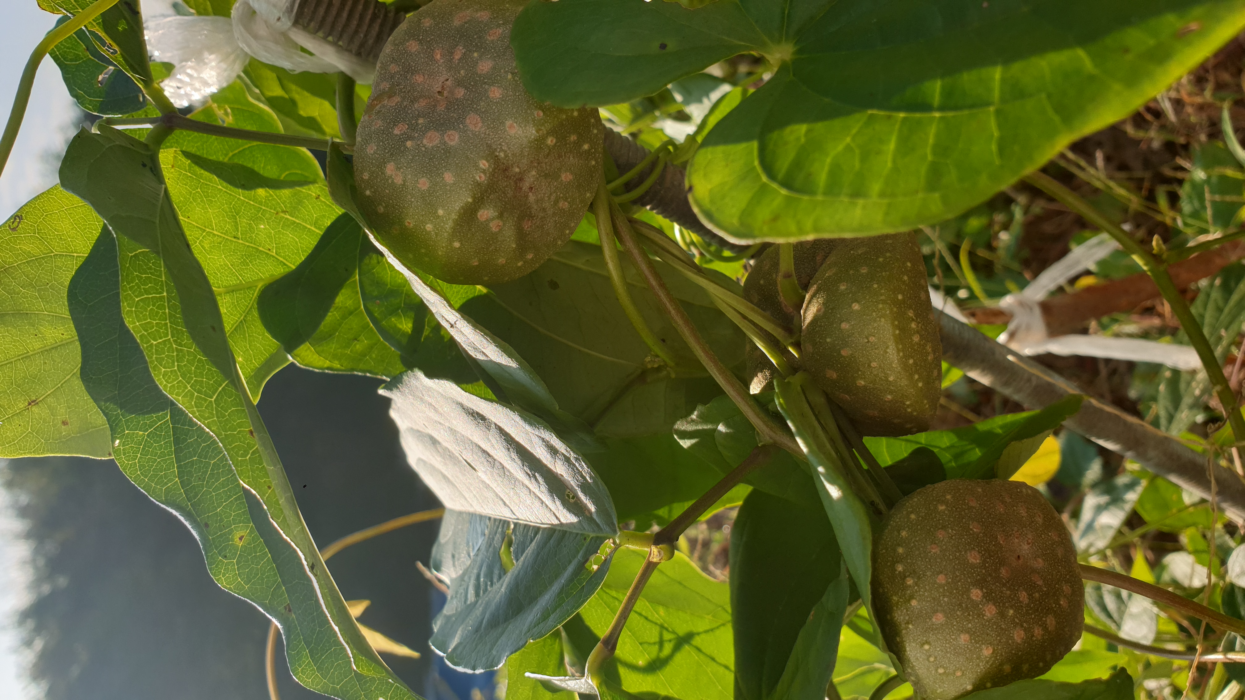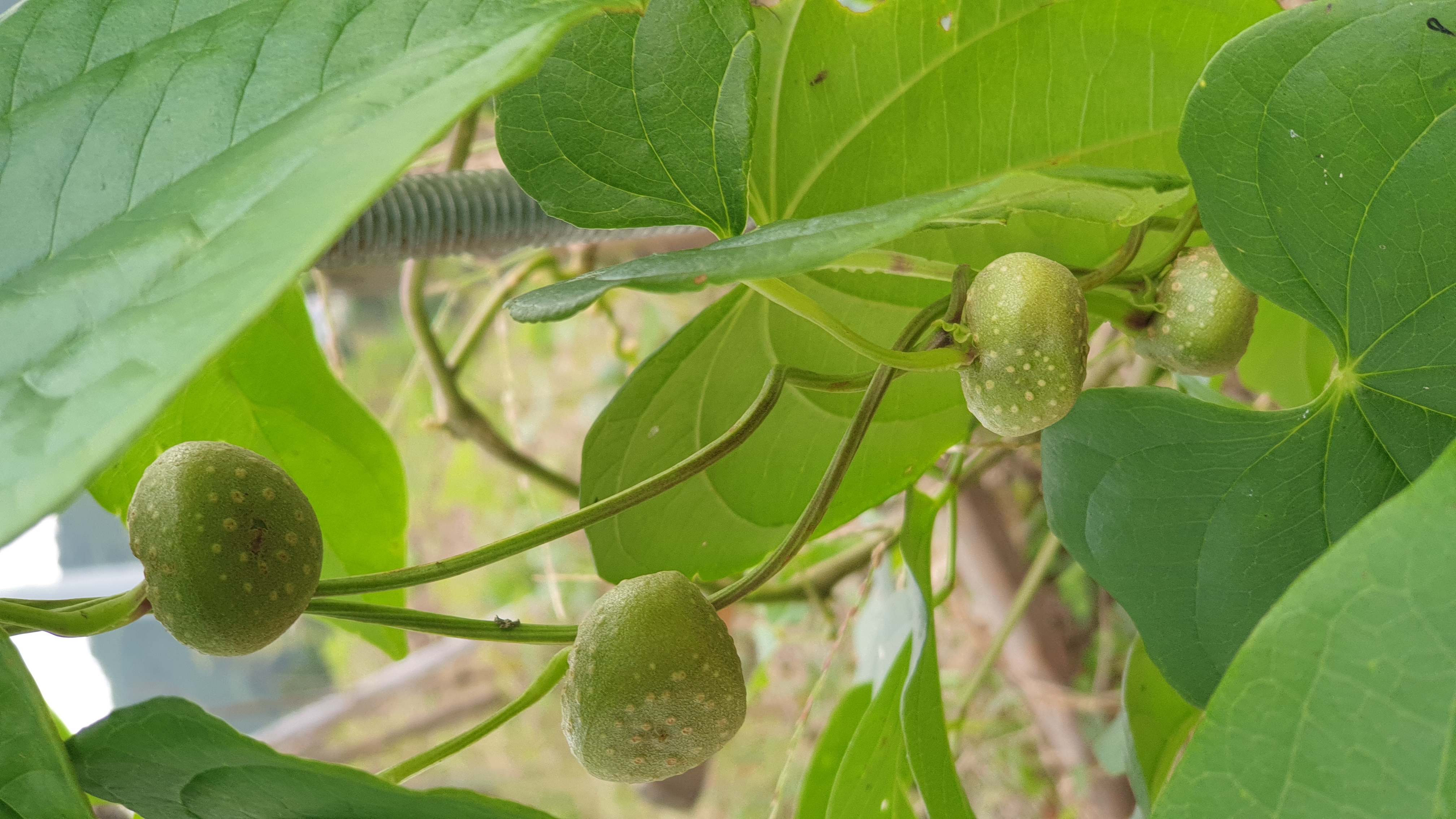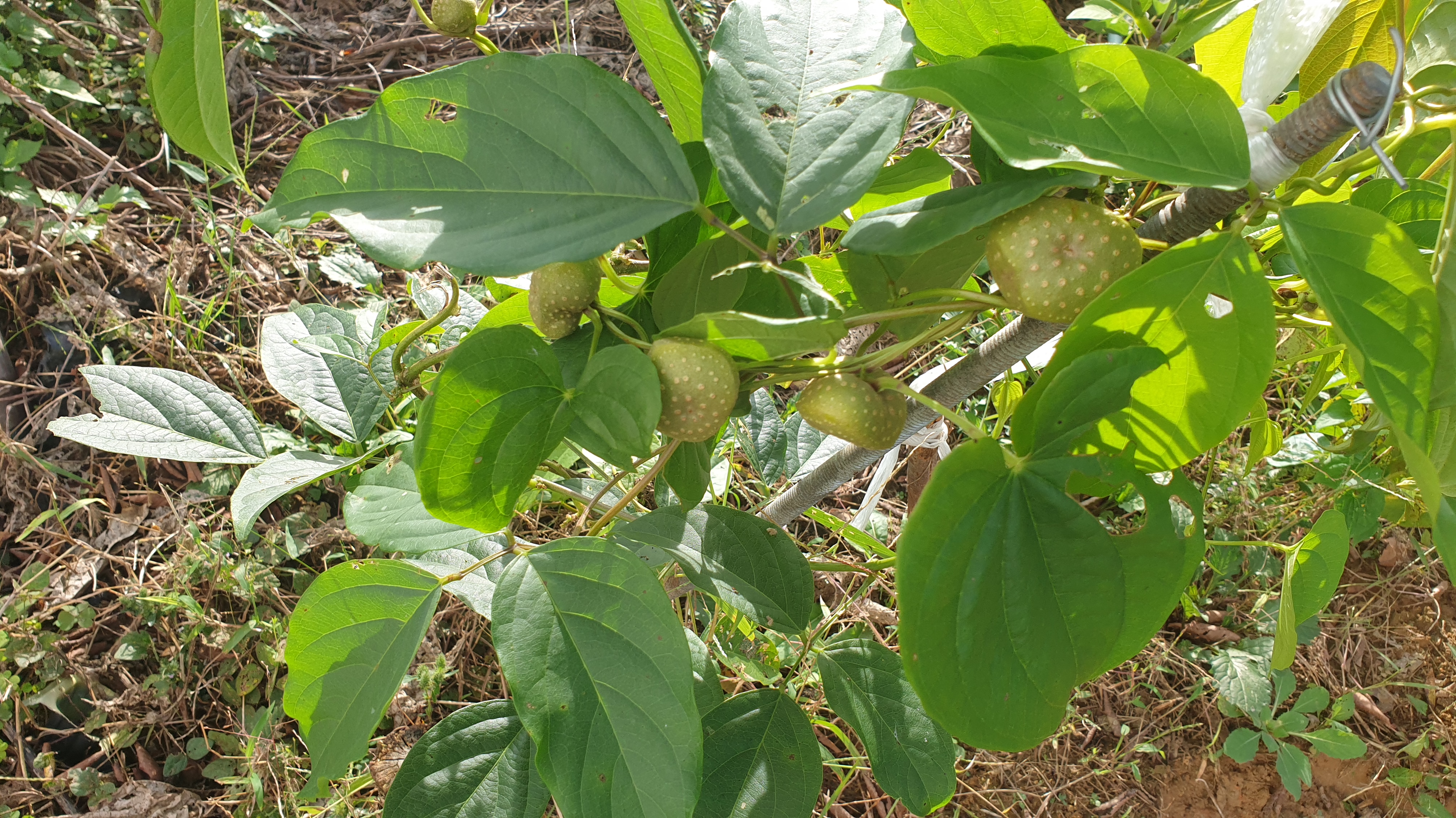 지난해 늦가을 친구집에 들러 얻어 온 열매를 봄날에 쪼개어 심었더니 싹이 돋아나고 이제는 열매까지 열렸다. 특별히 해준 것도 없고 통으로 심으려 했더니 농사를 조금하는 친구 얘길 듣고 수조각을 내어 심었다. 마를 먹기 위해서 보다는 한동안의 애완식물로 키우기를 좋아하는 마음이 크기 때문에서 였다. 열매를 맺기도 전에 예초기에 절단 난 마 덩굴에 새순이 자랐는데 완주군 읍소재지에 살며 일년에 거쳐 자택을 아내와 함께 건축한 친구에게 선물로 갖다 주려고 한다. 이웃에 나눔을 실천하는 친구가 되리라 여겨진다.