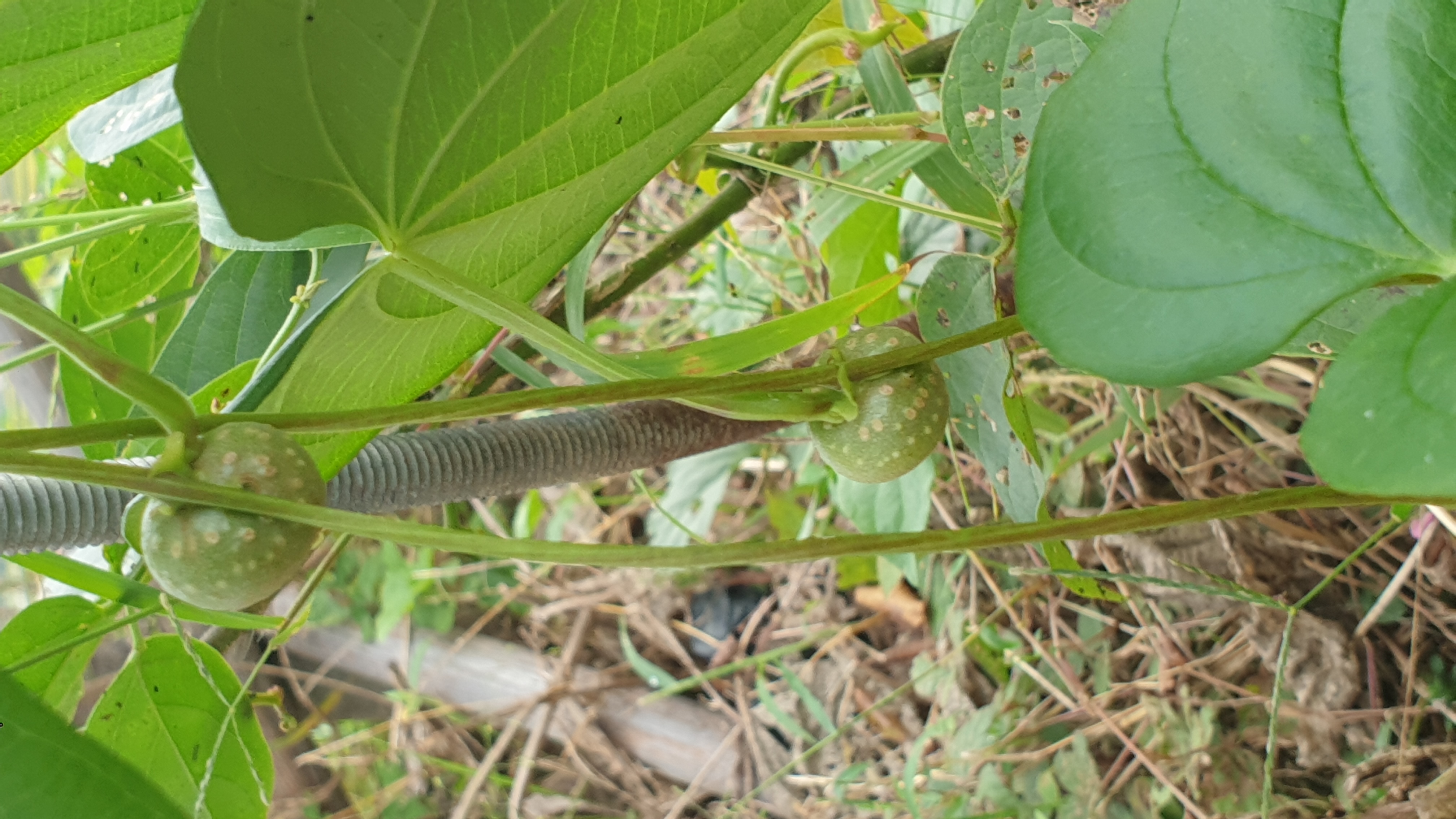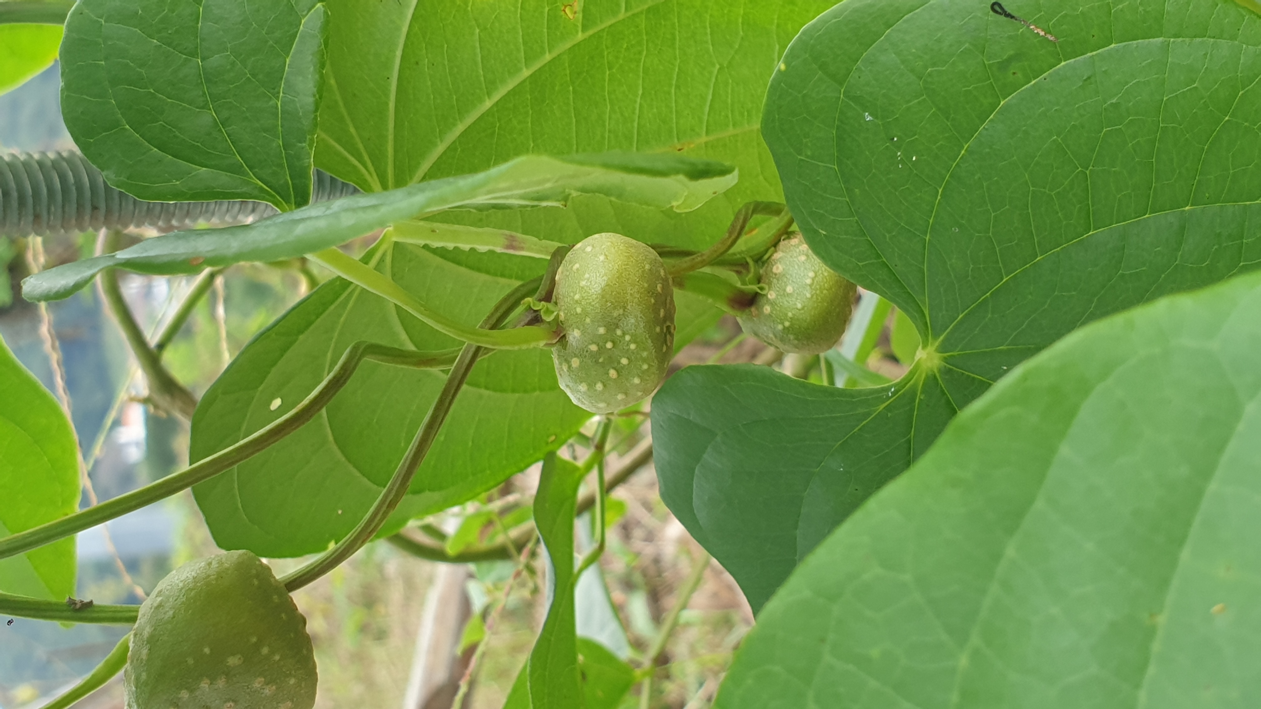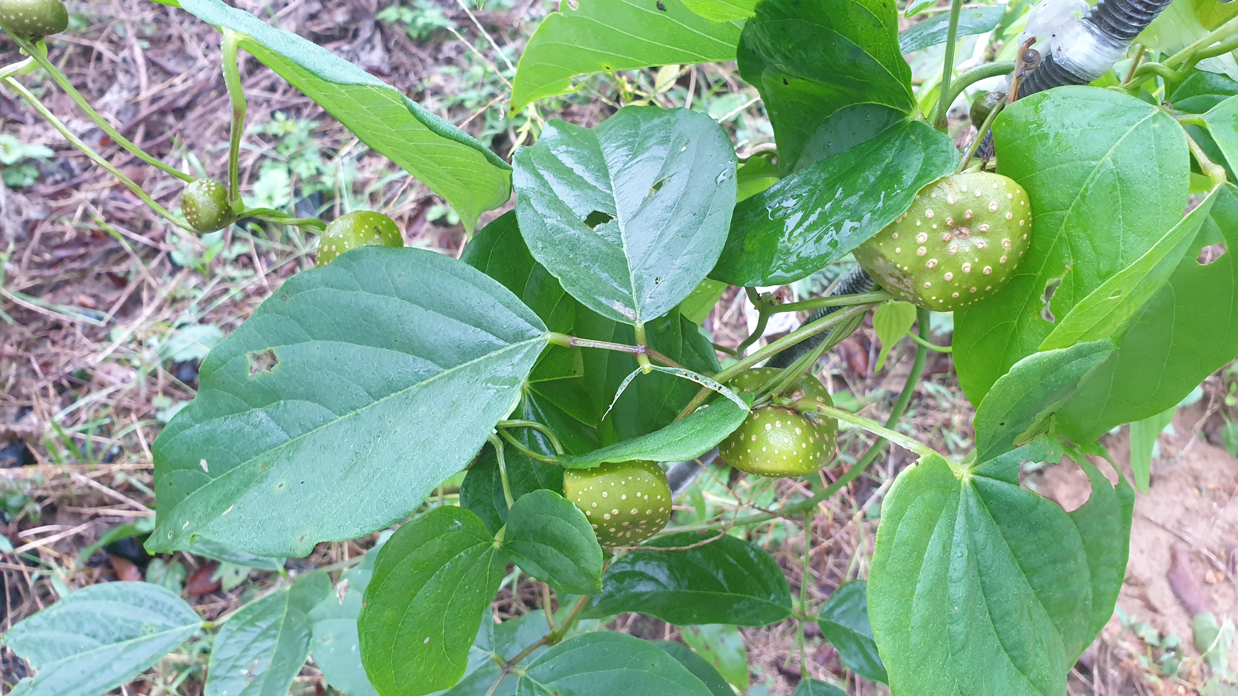 지난해 늦가을 친구집에 들러 얻어 온 열매를 봄날에 쪼개어 심었더니 싹이 돋아나고 이제는 열매까지 열렸다. 특별히 해준 것도 없고 통으로 심으려 했더니 농사를 조금하는 친구 얘길 듣고 수조각을 내어 심었다. 마를 먹기 위해서 보다는 한동안의 애완식물로 키우기를 좋아하는 마음이 크기 때문에서 였다. 열매를 맺기도 전에 예초기에 절단 난 마 덩굴에 새순이 자랐는데 완주군 읍소재지에 살며 일년에 거쳐 자택을 아내와 함께 건축한 친구에게 선물로 갖다 주려고 한다. 이웃에 나눔을 실천하는 친구가 되리라 여겨진다.