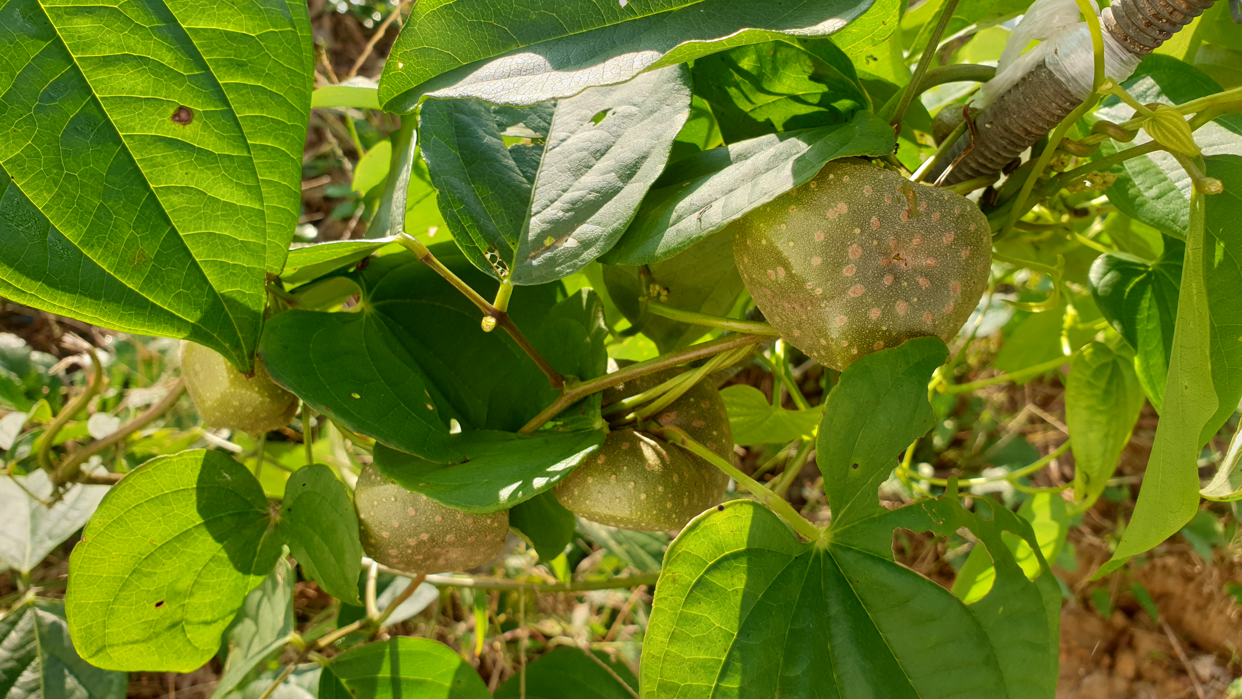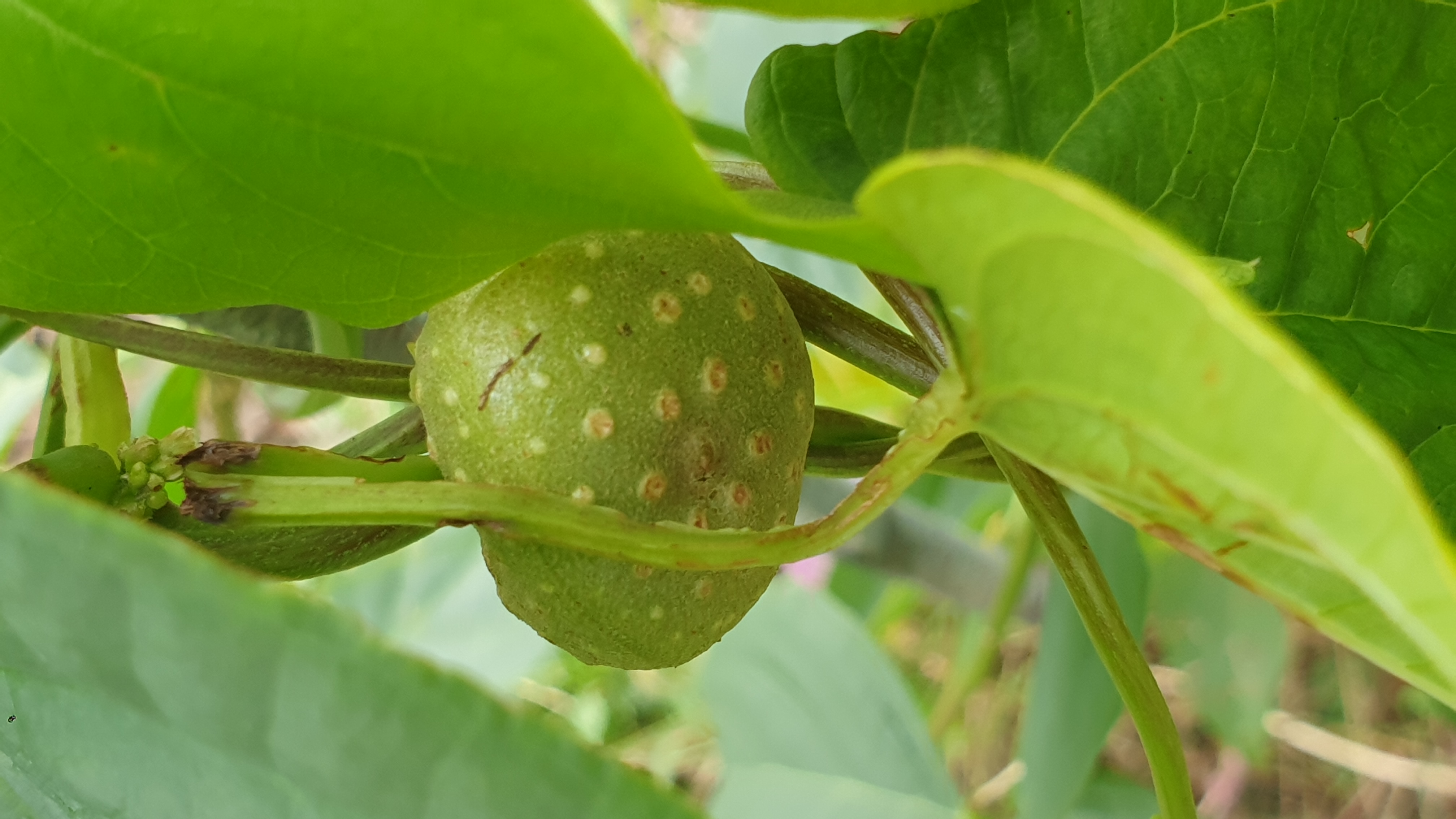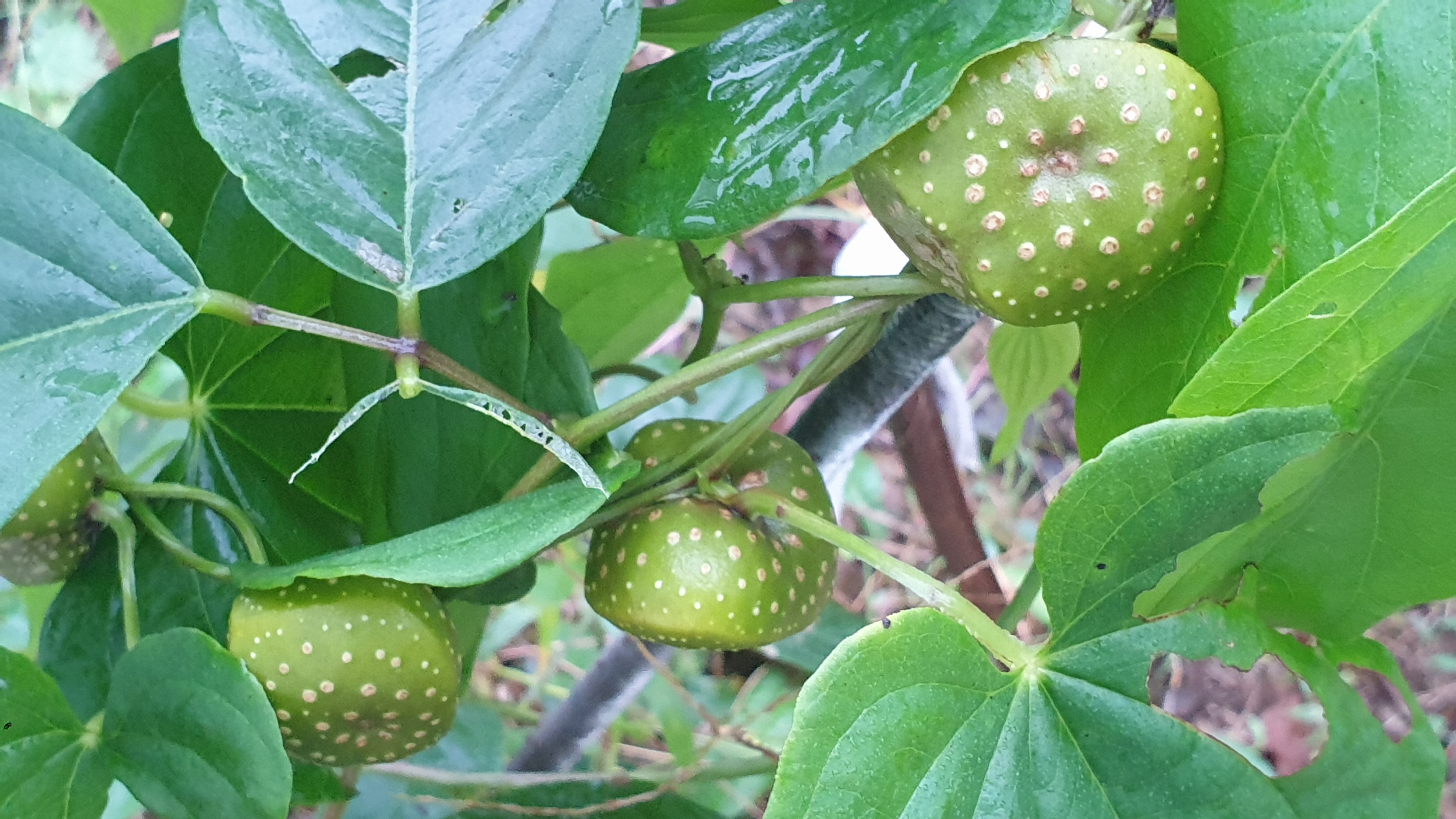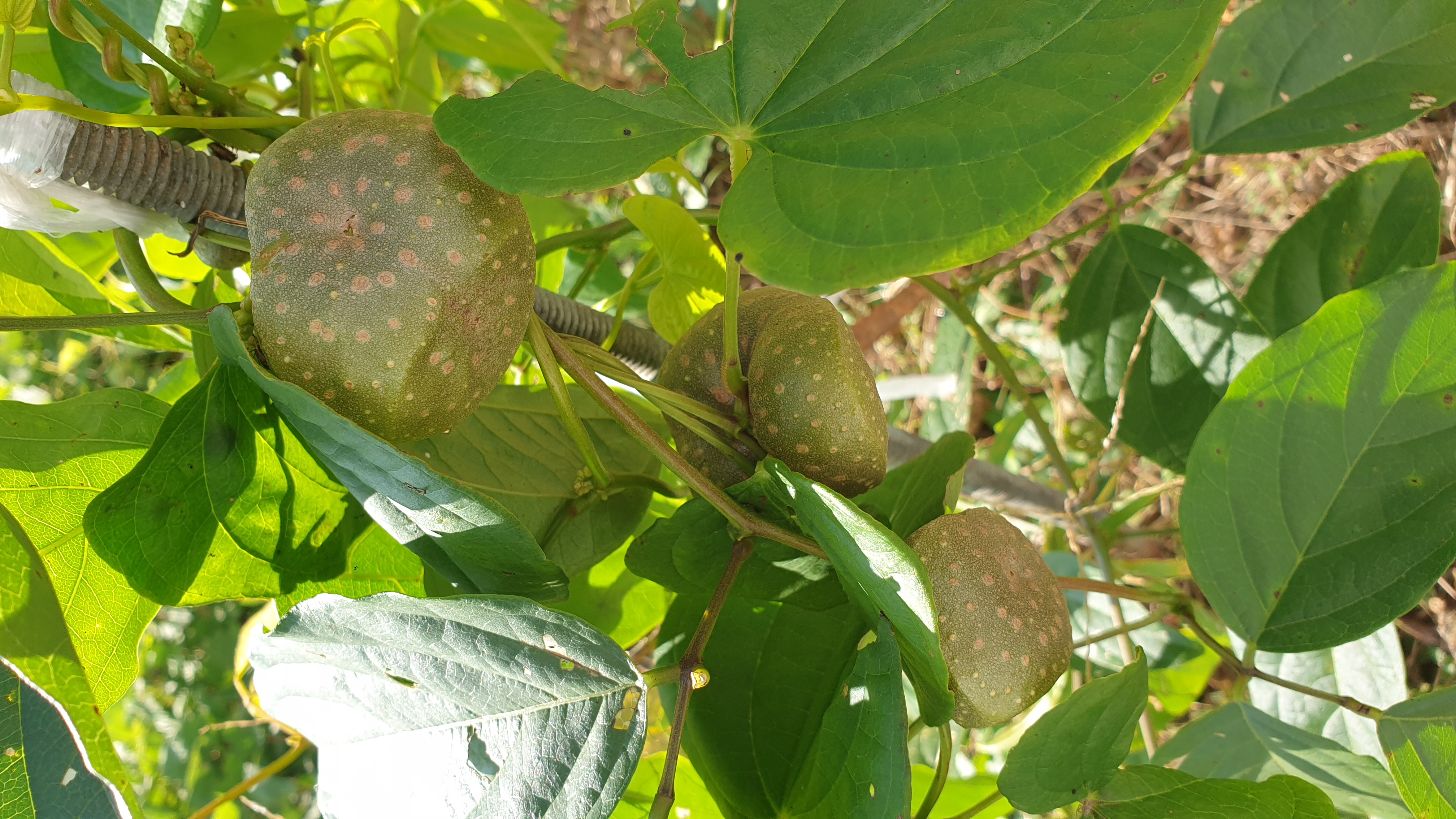 지난해 늦가을 친구집에 들러 얻어 온 열매를 봄날에 쪼개어 심었더니 싹이 돋아나고 이제는 열매까지 열렸다. 특별히 해준 것도 없고 통으로 심으려 했더니 농사를 조금하는 친구 얘길 듣고 수조각을 내어 심었다. 마를 먹기 위해서 보다는 한동안의 애완식물로 키우기를 좋아하는 마음이 크기 때문에서 였다. 열매를 맺기도 전에 예초기에 절단 난 마 덩굴에 새순이 자랐는데 완주군 읍소재지에 살며 일년에 거쳐 자택을 아내와 함께 건축한 친구에게 선물로 갖다 주려고 한다. 이웃에 나눔을 실천하는 친구가 되리라 여겨진다.