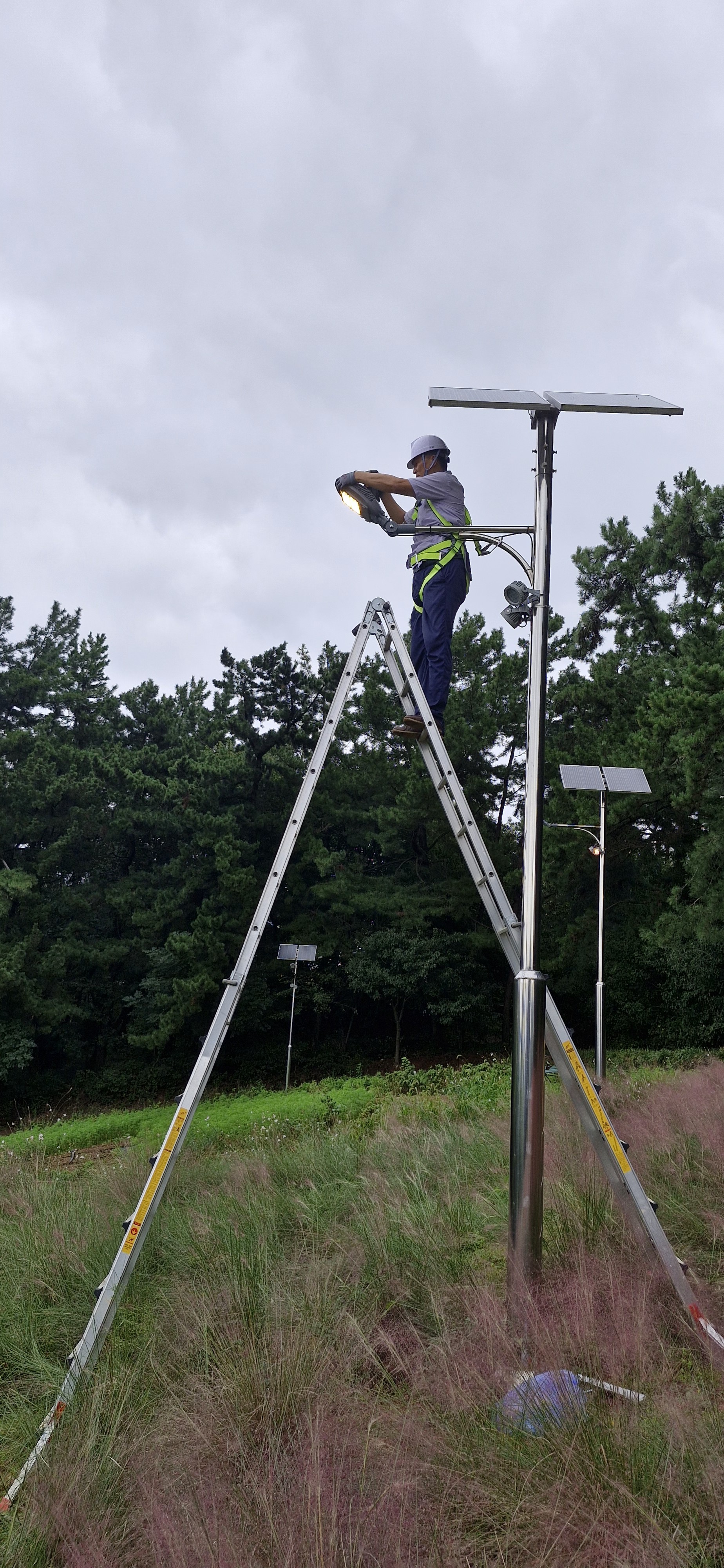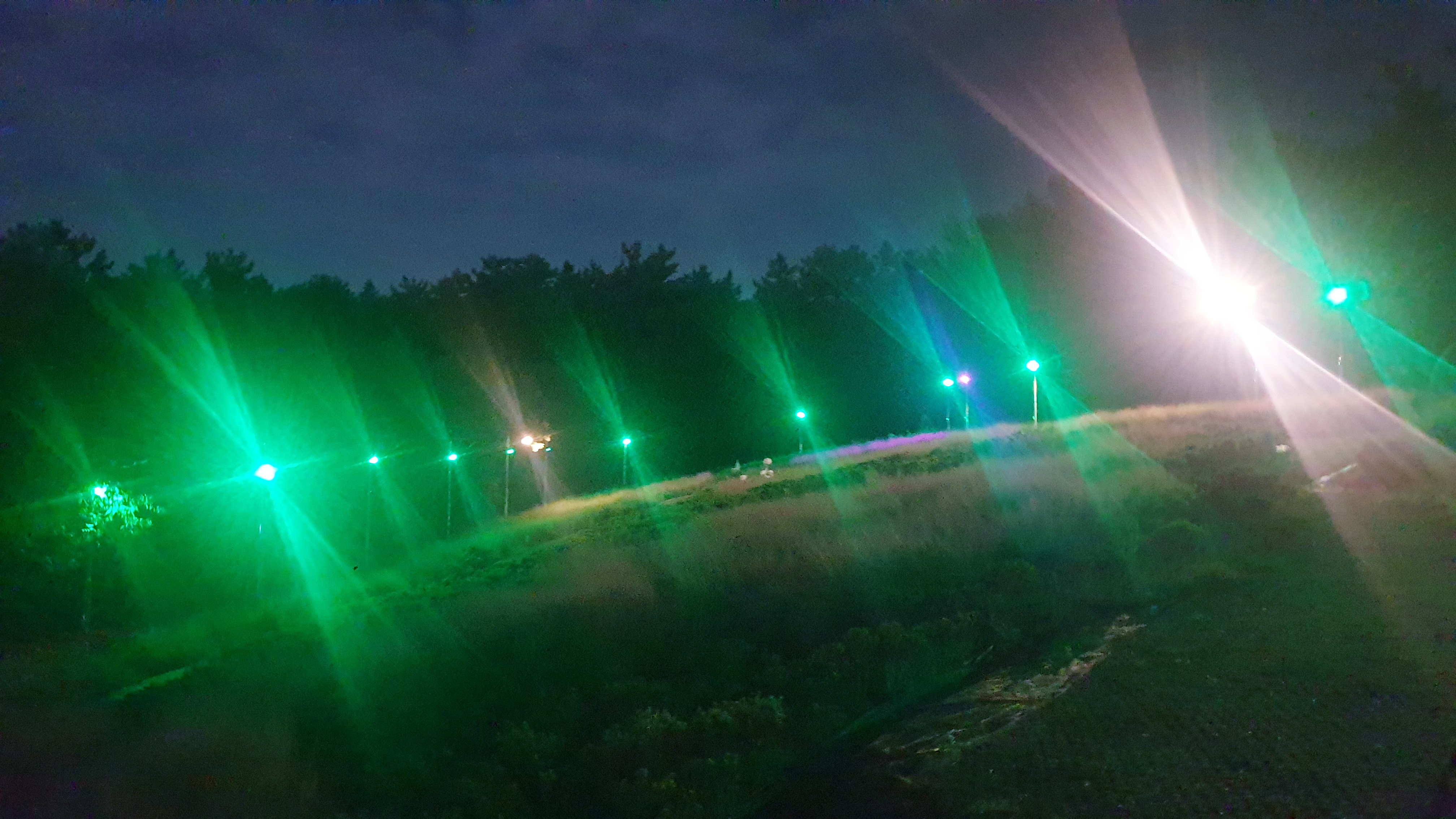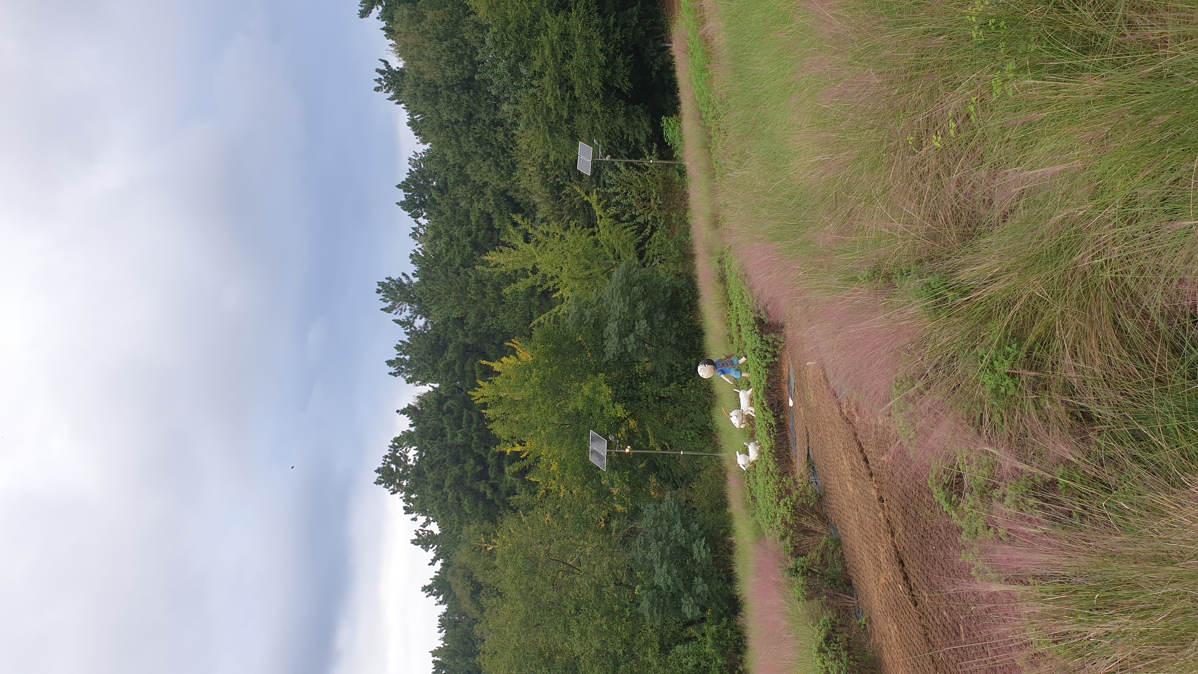 핑크뮬리로 가득한 공원의 정원에 설치했던 태양광 LED가로등과 LED투광등이 오동작하고 점등이 없다는 민원접수로 인해 현장을 야간에 방문했더니 5대가 오동작 상태였다.