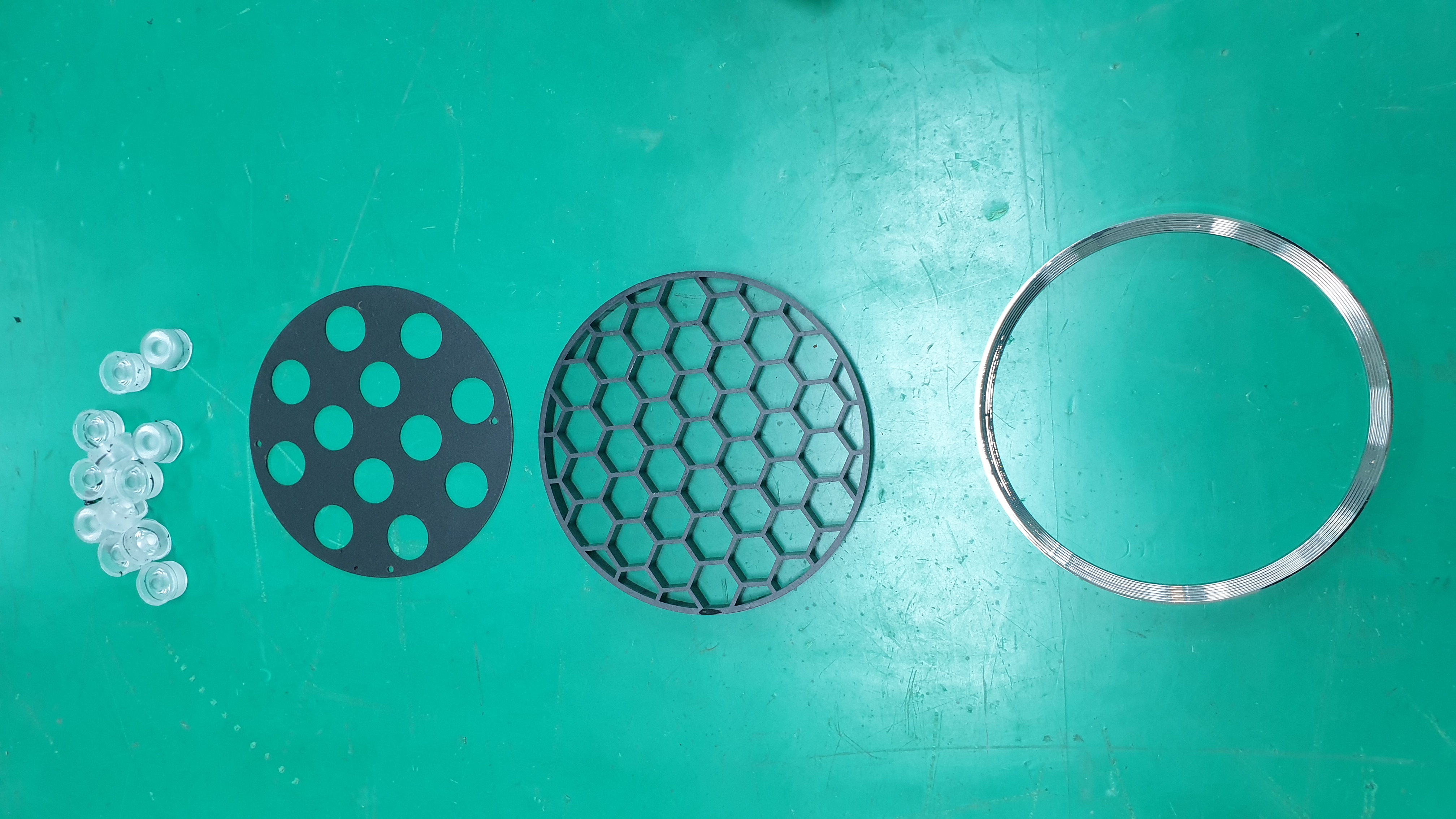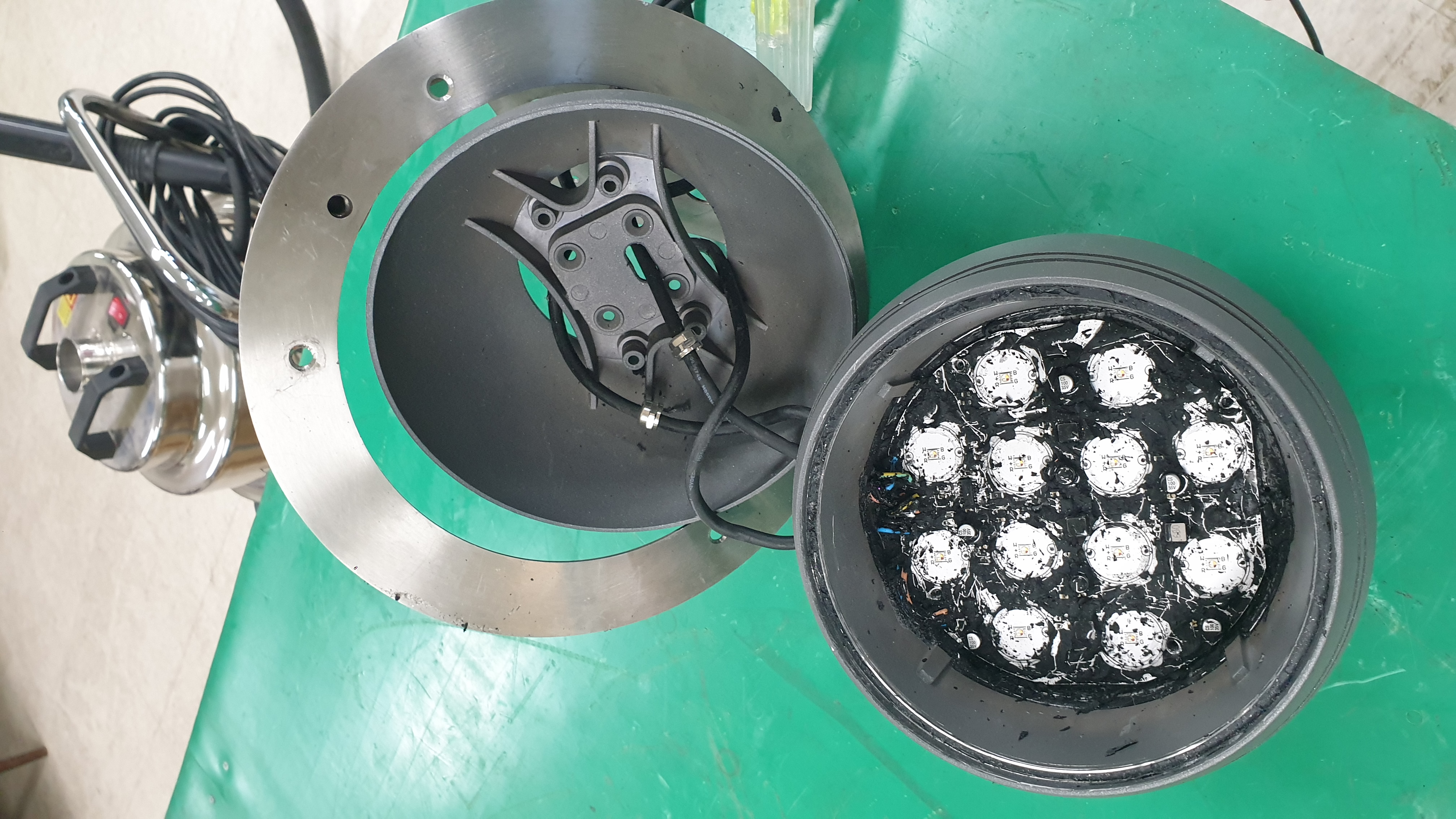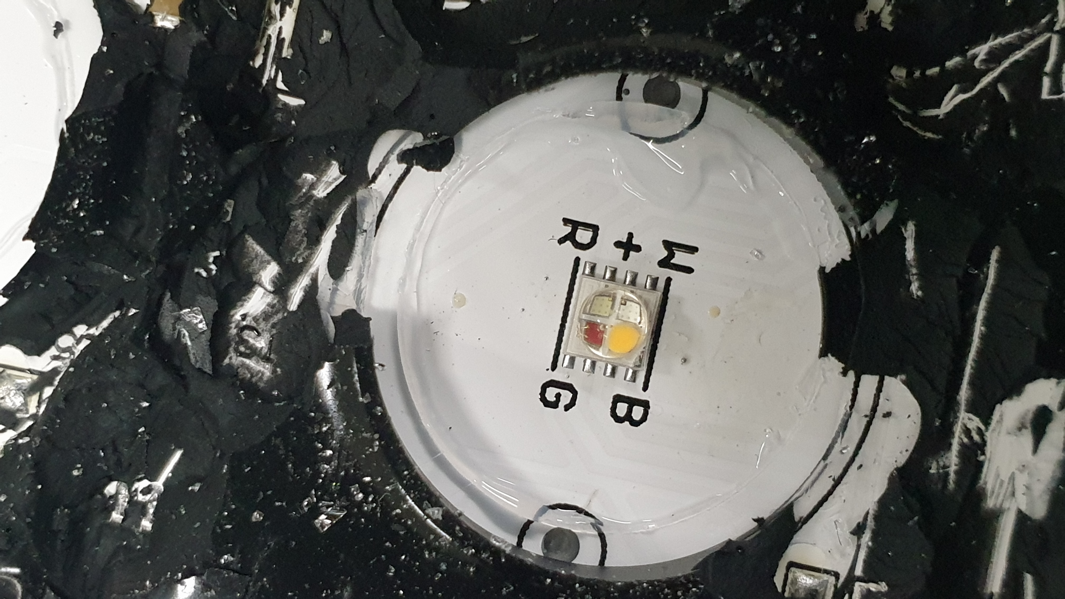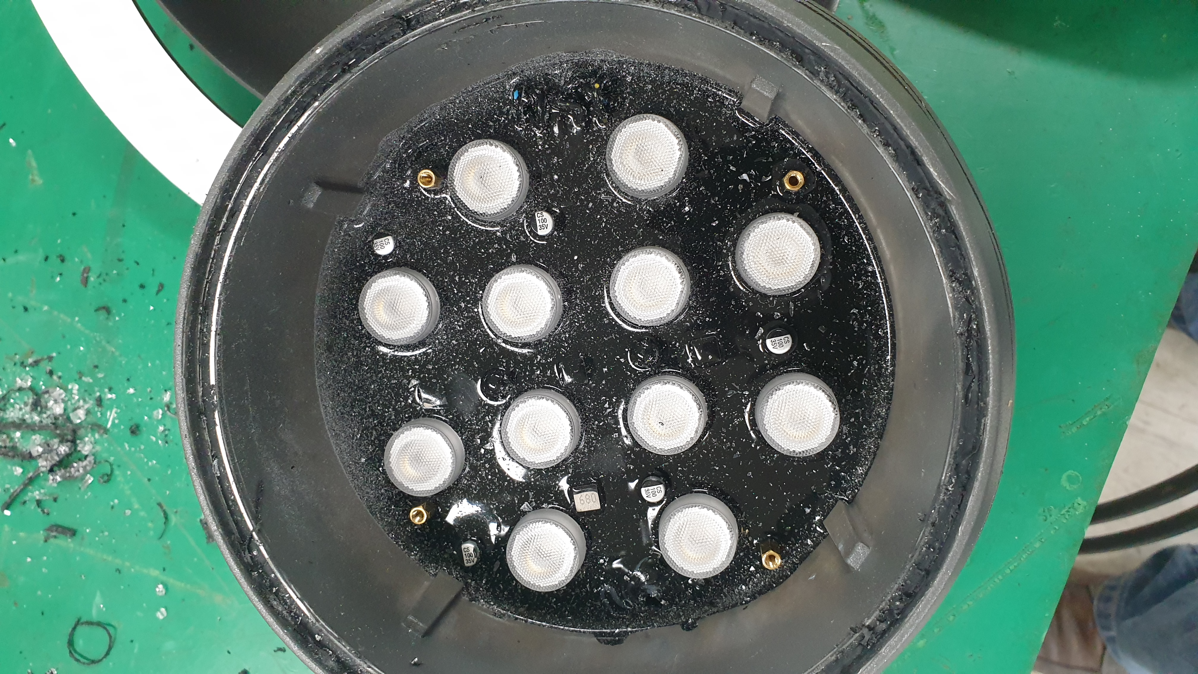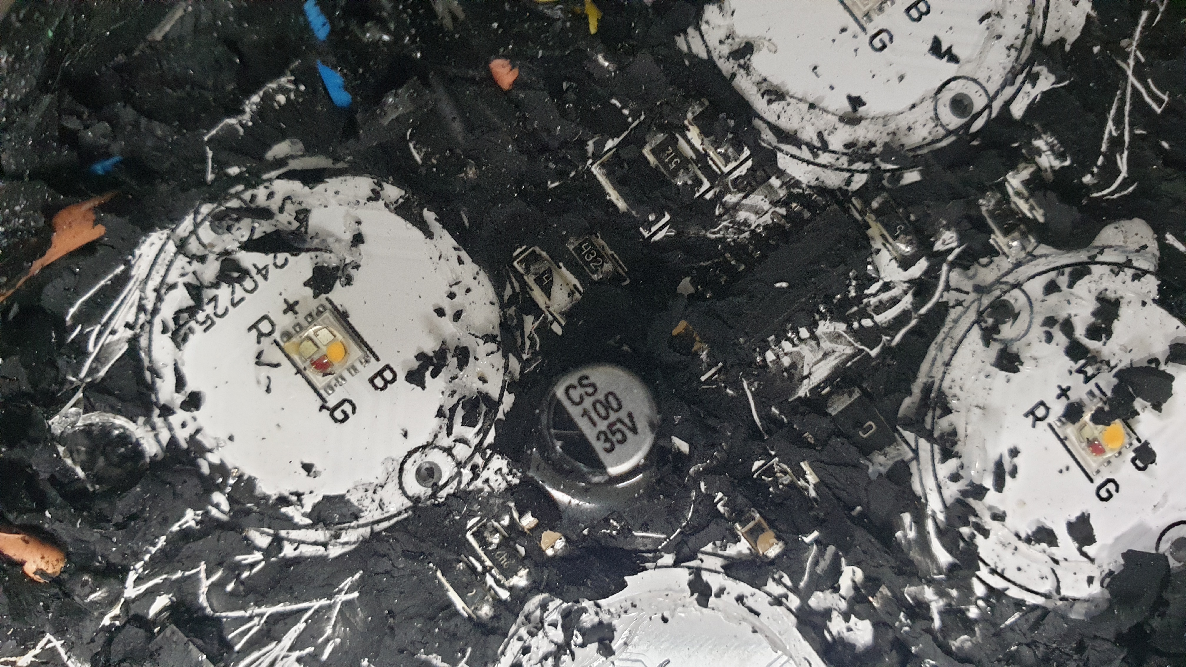 강화유리를 깨서 분해를 했다. DMX수신 드라이버가 별도로 있는 줄 알았는데 메탈 PCB부품면에 배치되어 있다.