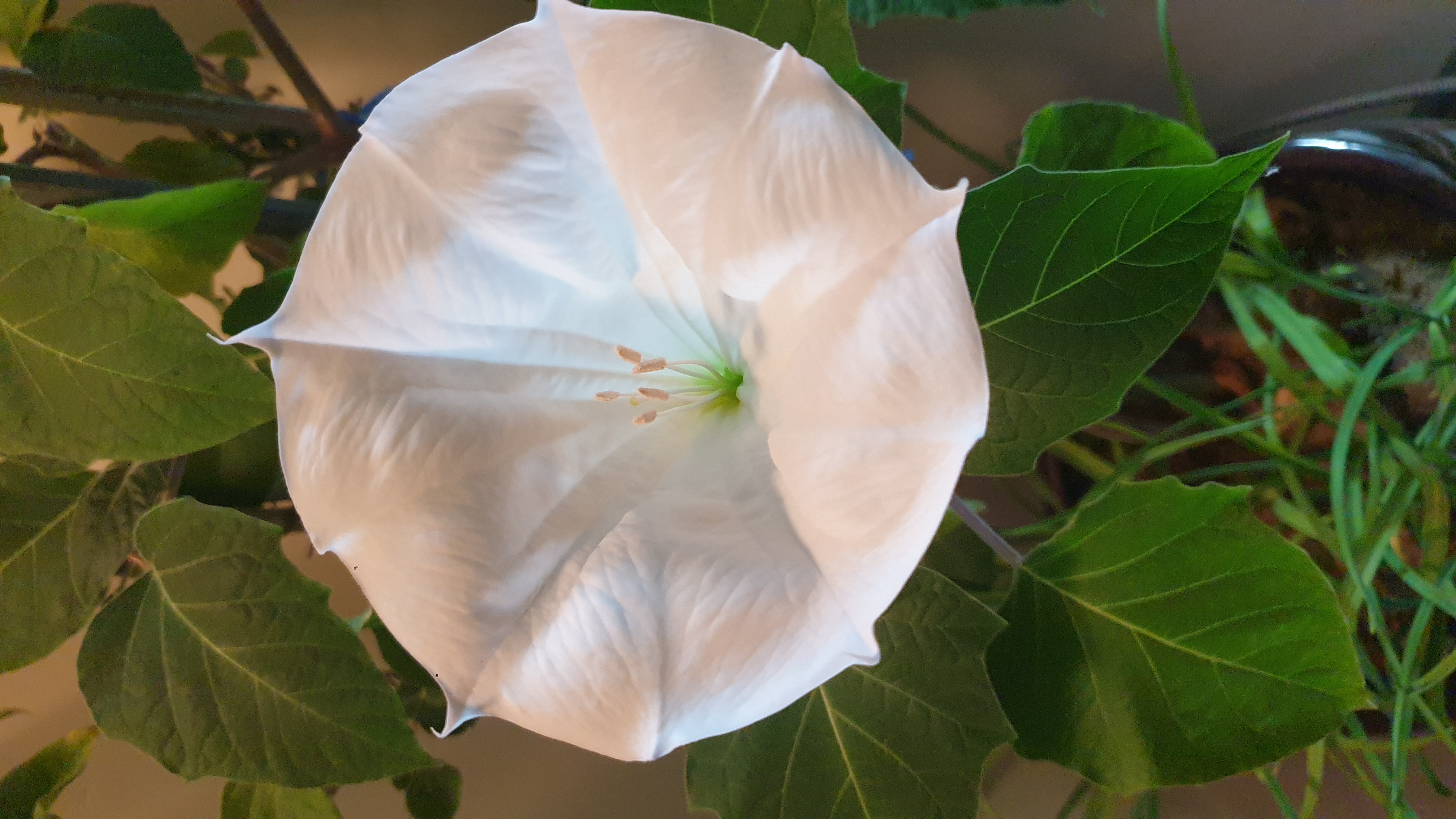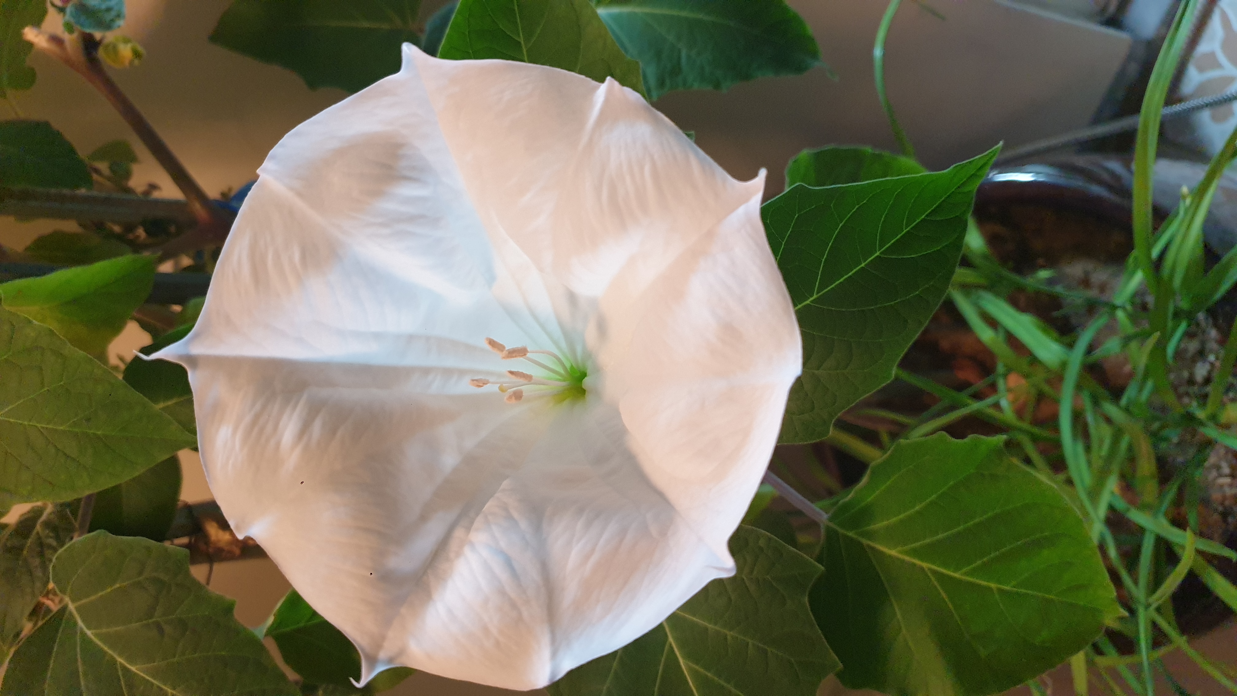 추운 12월 초순인데 흰 독말풀꽃이 피었다.