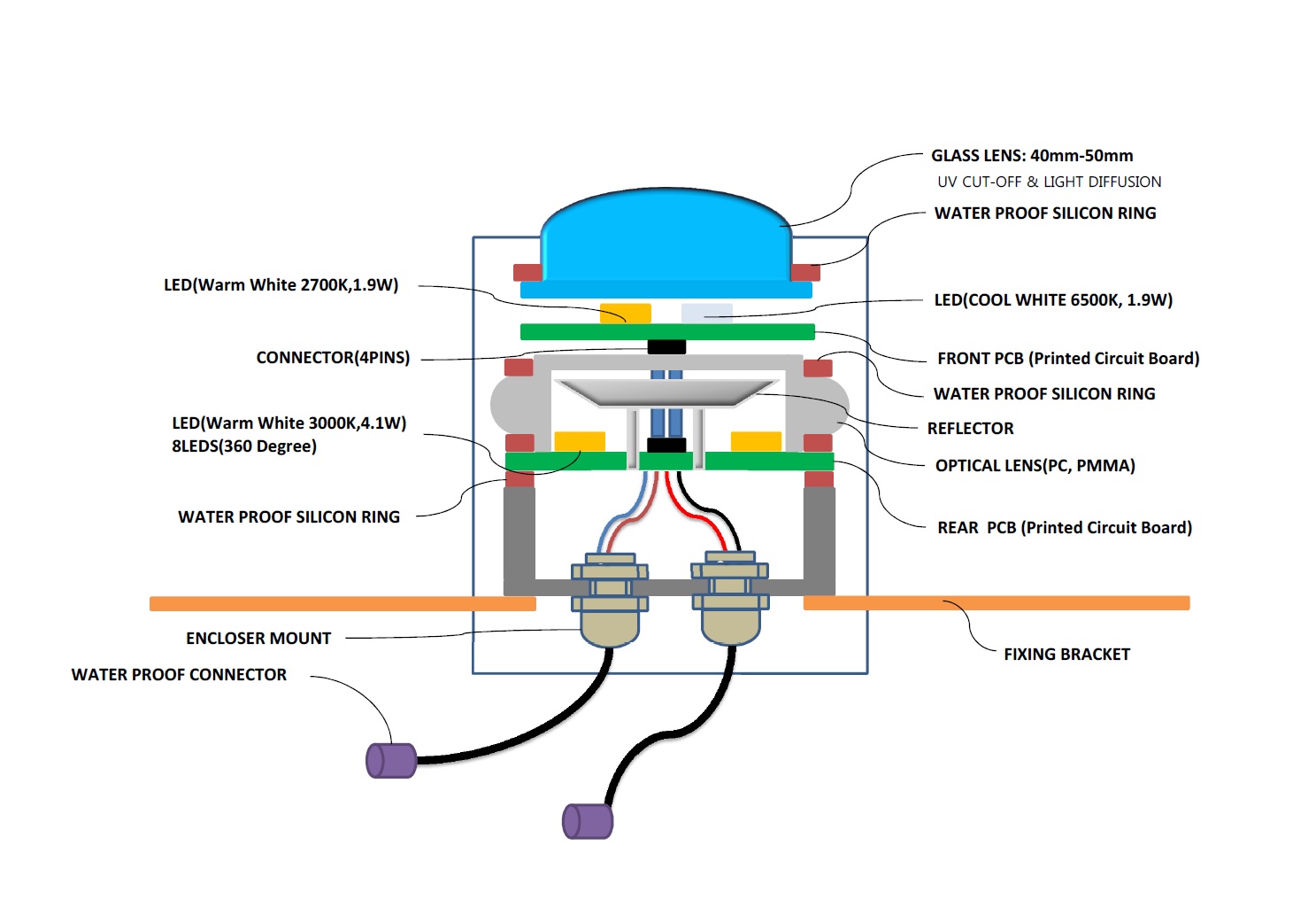 LED는 Cree사의 Power LED 3 Watts패키지를 적용했다. 생산은 중국의 저렴한 인건비를 고려해 조립해 수입한 것을 전수 점등검사와 재포장을 실시했다.