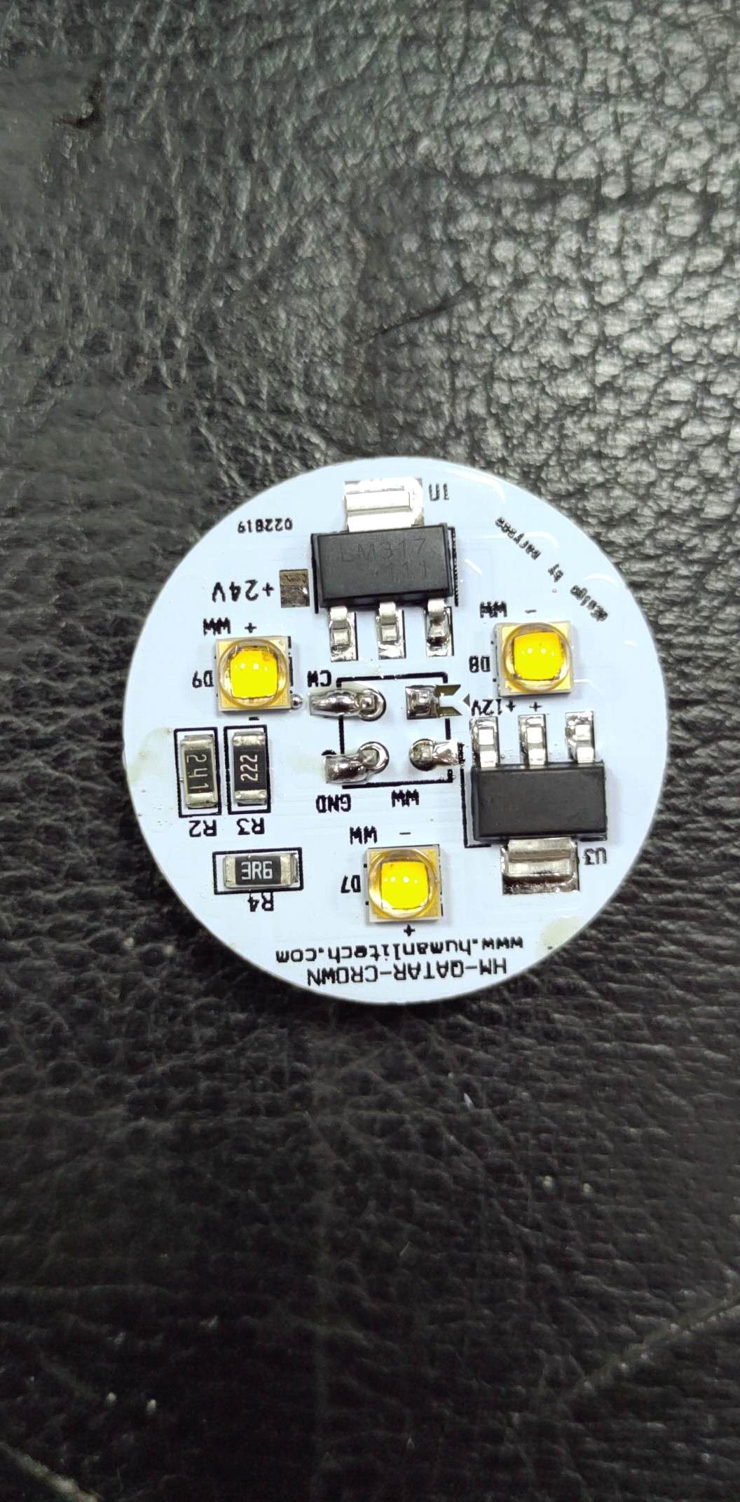 정면부는 전구색과 주광색을 표현토록 했다. 측면부는 전구색으로 하우징 주변 프레임에 왕관형태를 표현토록 했다. 하우징은 프레임과 마찬가지로 황금색 아노다이징을 실시했다. 수천 개의 수량이다 보니 대표이사까지 최종 포장작업을 지원해야 했다. 설치공사는 카타르 현지업체에서 했었다.