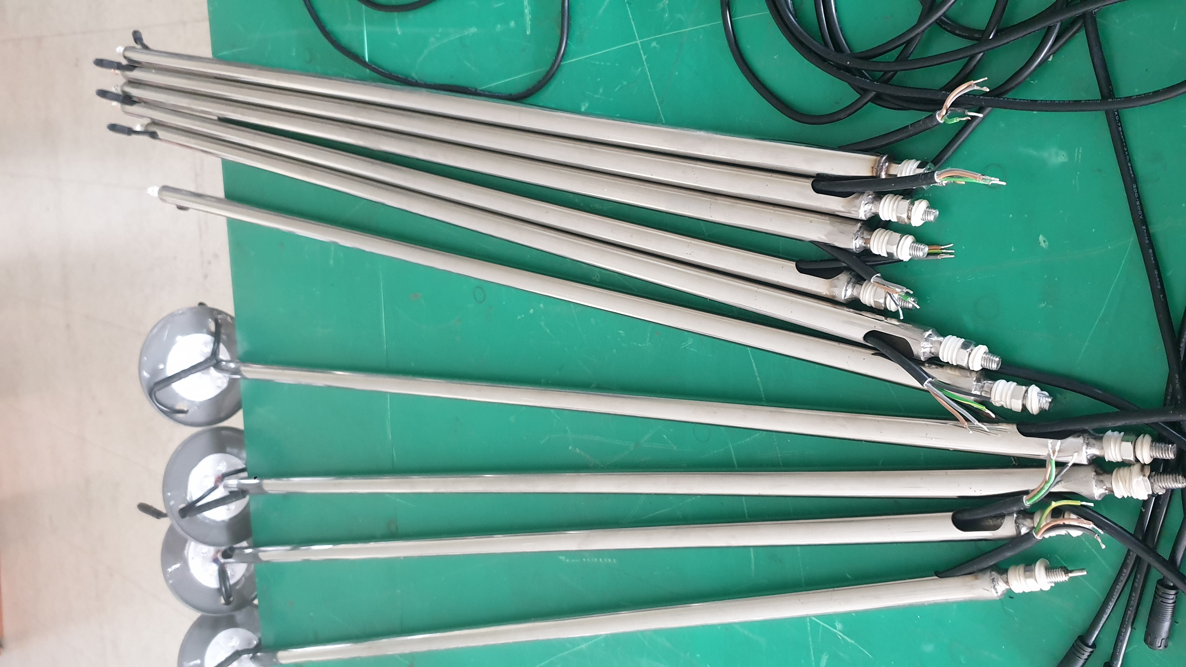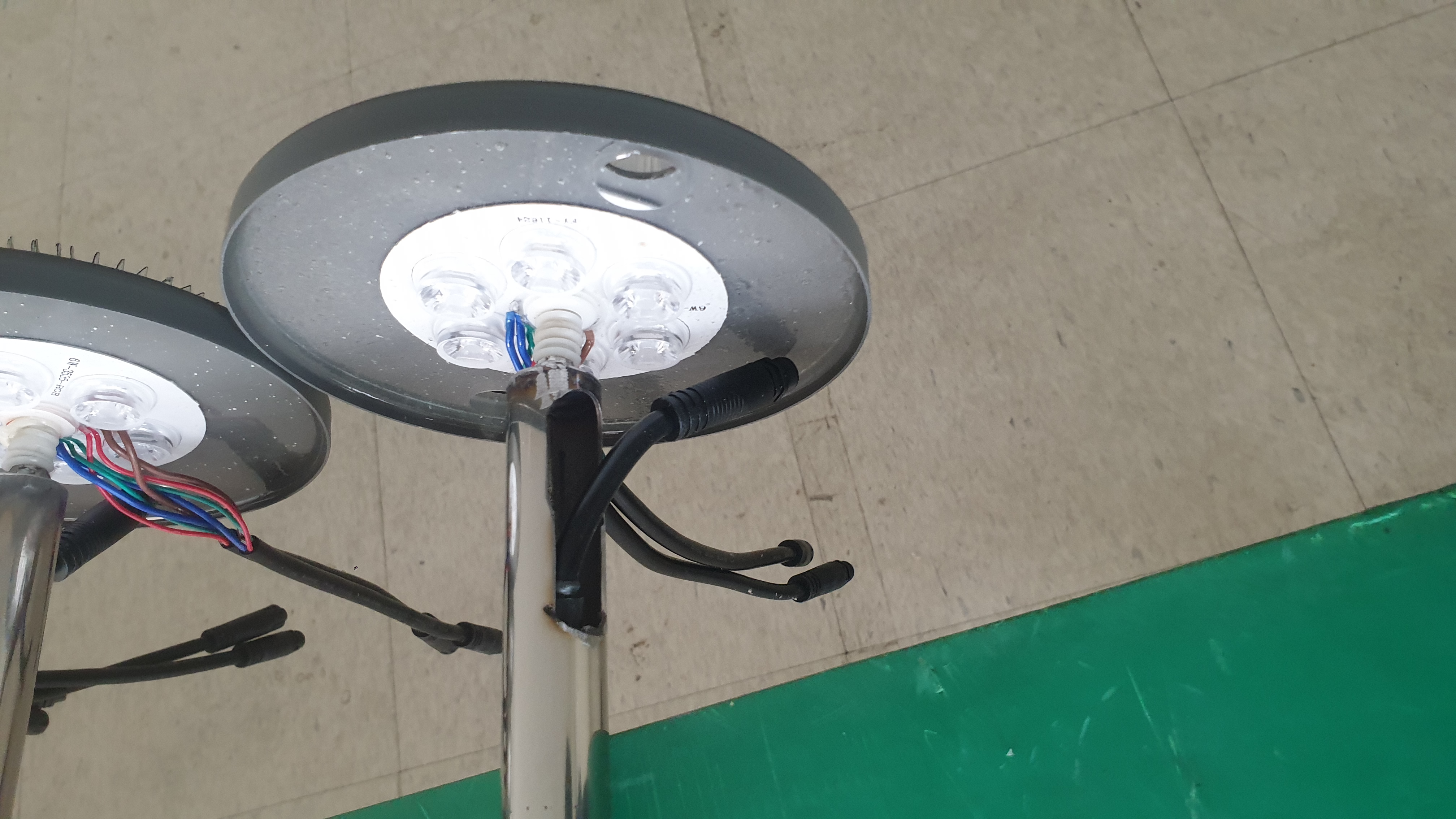 RGB LED를 적용한 🌈 열주등을 기초조립을 했다. 하향으로 빔조사 형이지만 아랫부분도 측면으로 조사가 있는 구조다. 스테인리스 파이프는 상부의 지지대 역할과 함께 상부 LED PCB모듈로 가는 전선을 감추기 위함이다.
